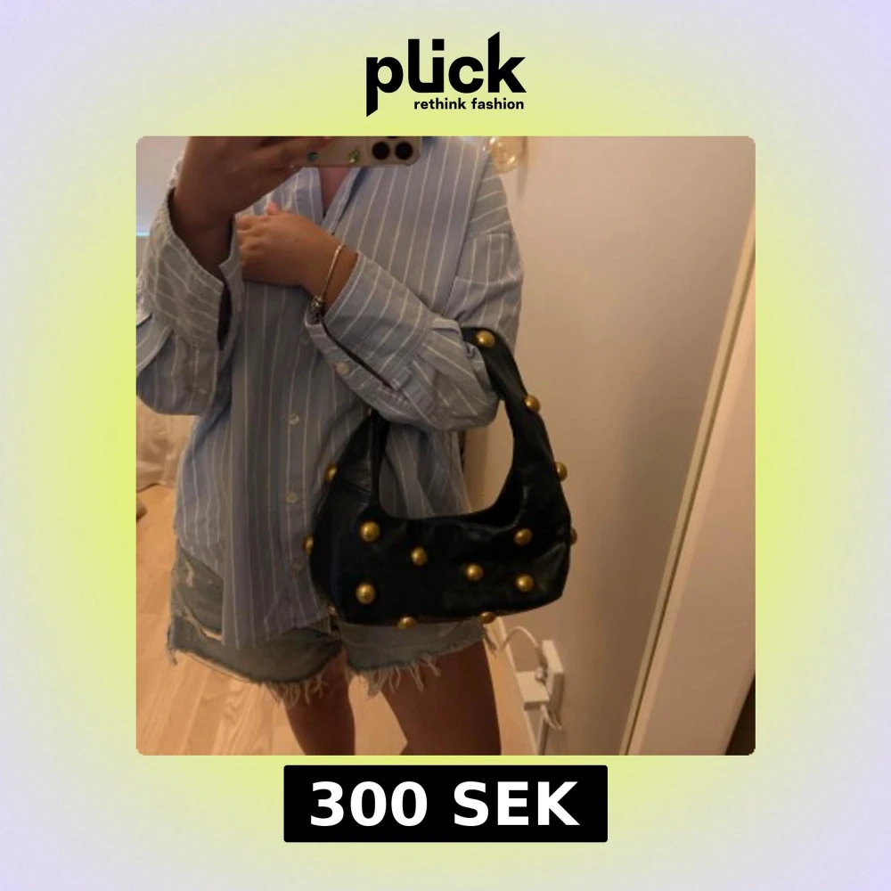 Säljer nu min as snygga och coola populära väska ifrån Zara med guldiga nit detaljer i mörkgrön färg. Den är verkligen super fin men kommer tyvärr inte längre till användning. Knäpps med en magnet knapp och är hyfsat rymlig🥰