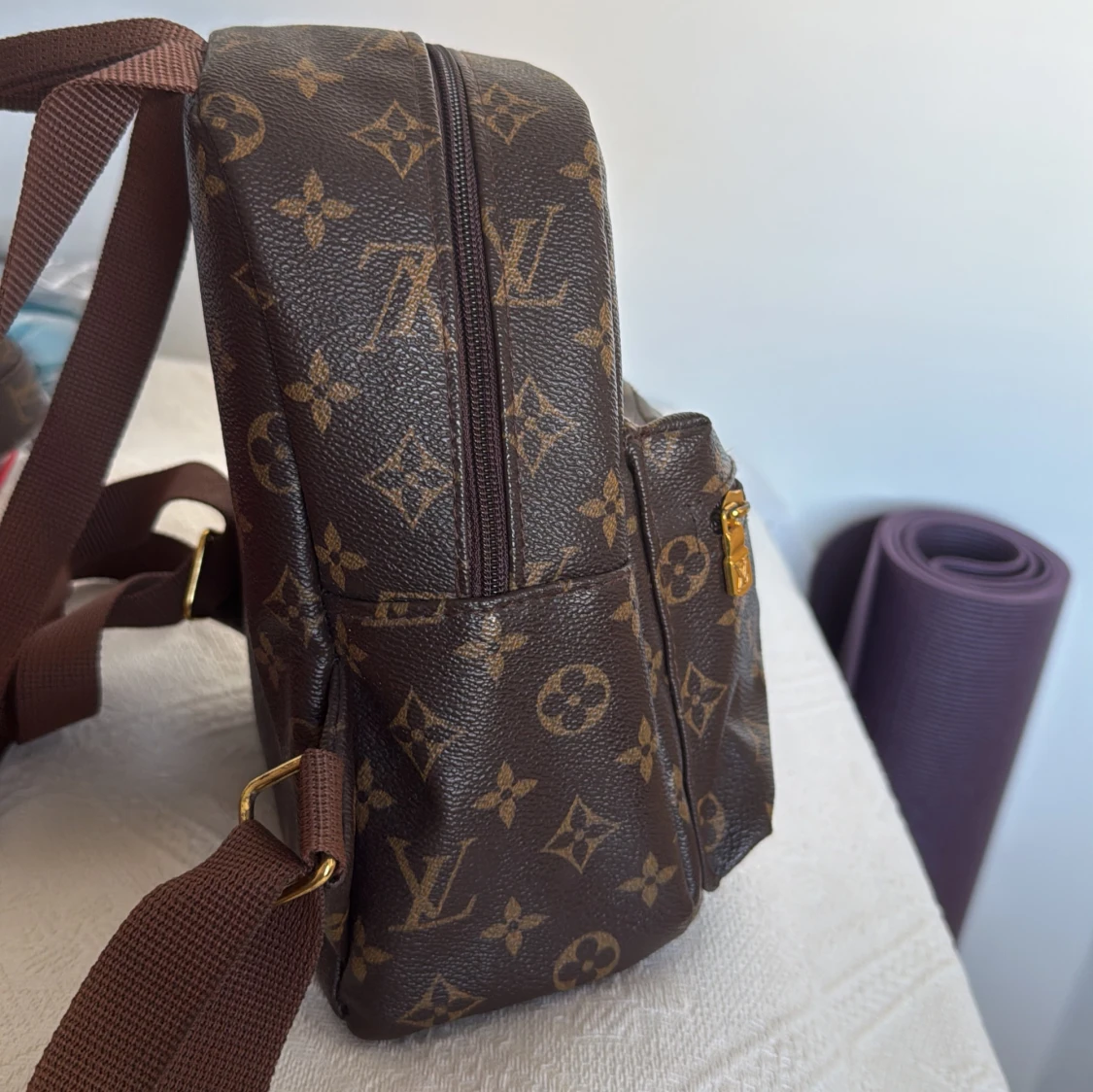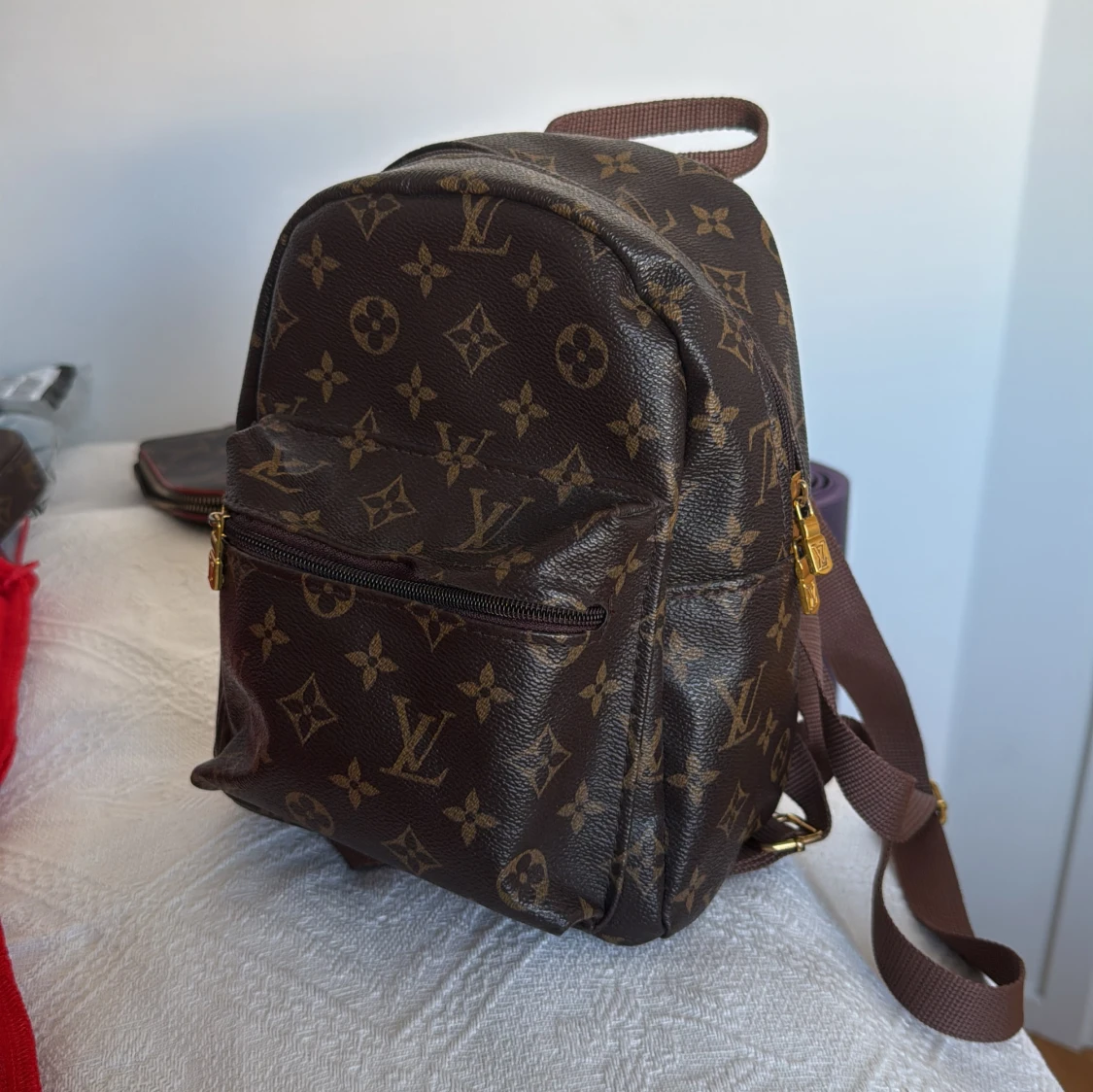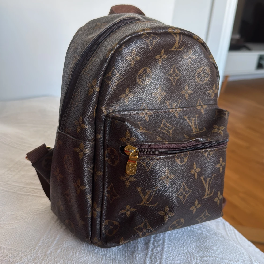 En söt ganska liten/medelstor ryggsäck i monogram i läderimitation.