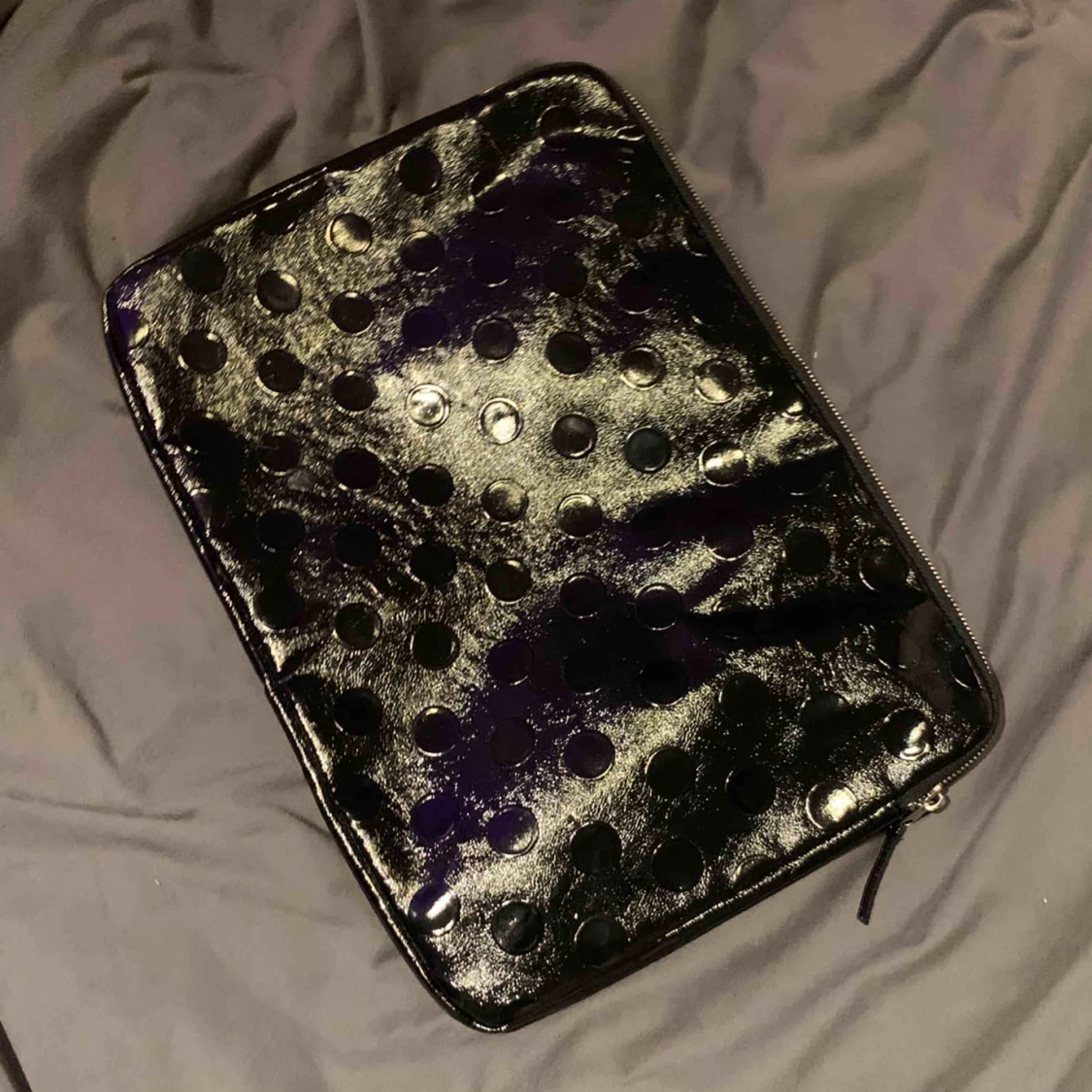 supergullig datorväska från monki. det är ett hål i tyget på insidan, annars som i nyskick.
