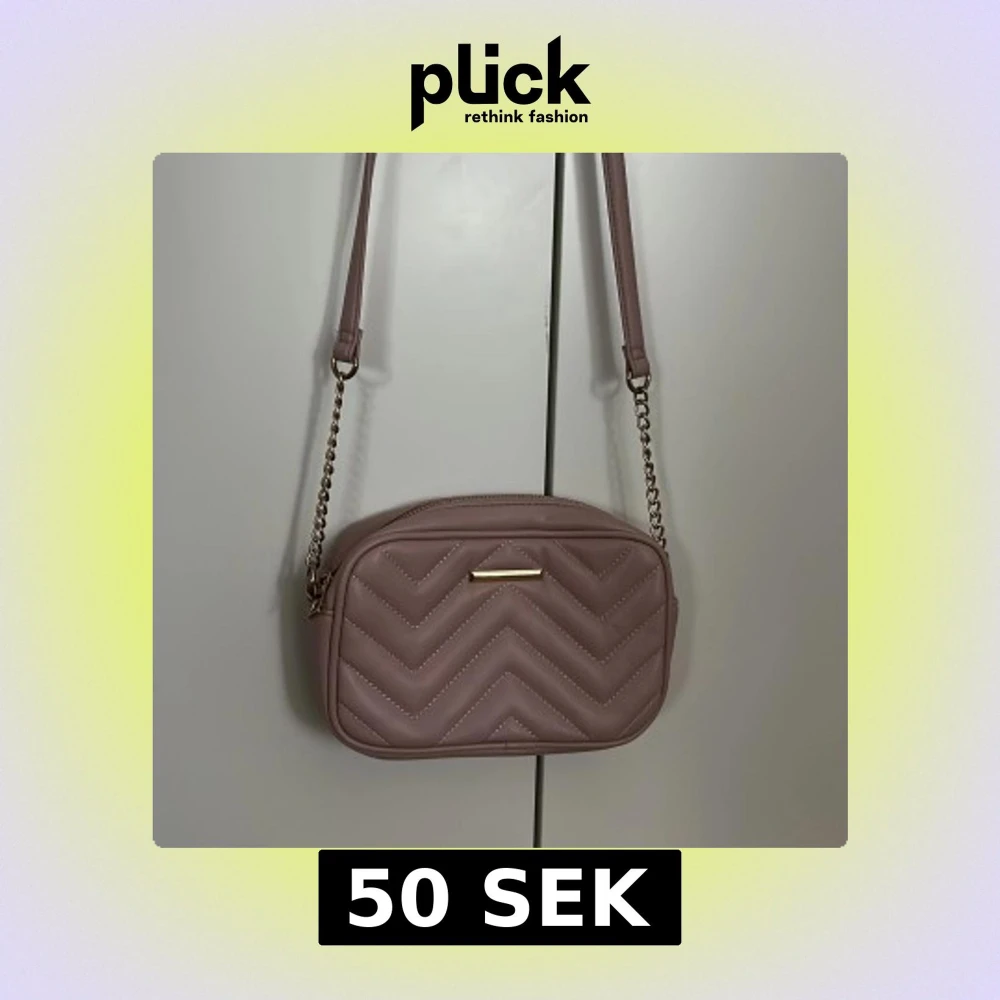 Säljer en snygg rosa axelväska med quiltat mönster och guldfärgad kedja på axelremmen. Väskan har en rektangulär form och en dekorativ gulddetalj framtill. Perfekt för att lyfta din outfit!