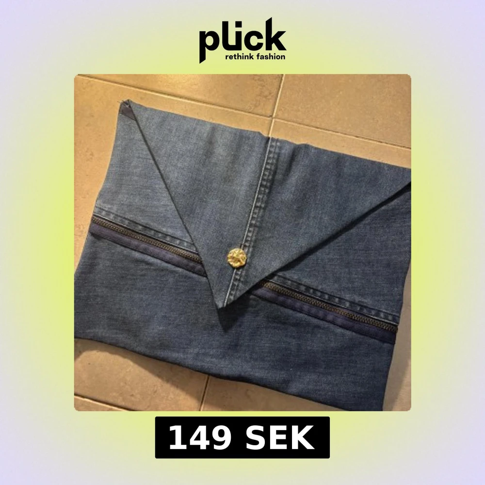 Unikt datafodral i mörkblått jeanstyg med guldknapp. Insidan är fodrad med ett mjukt silkestyg för extra skydd. Passar 13 tum (vanlig skoldator)