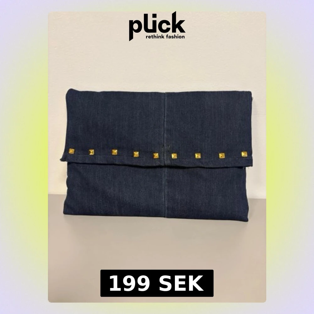 Mörkblått datorfodral av återvunna jeans med filt och silke inuti, guldiga nitar och magnetisk knapp!💙 Fodralet är ca 37x27 cm🌟