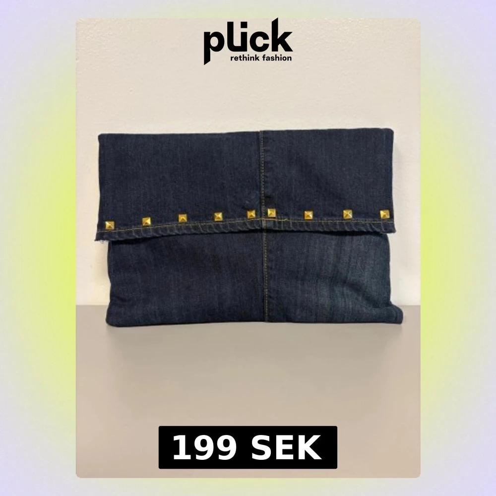Mörkblått datorfodral av återvunna jeans med filt och silke inuti, guldiga nitar och magnetisk knapp!💙 Fodralet är ca 37x27 cm🌟