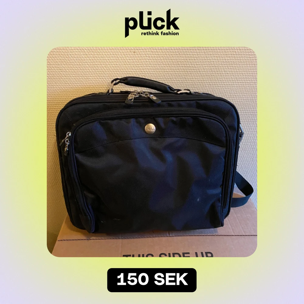 Säljer en svart datorväska från Dell i bra skick. Väskan har flera fack med dragkedja och en bekväm axelrem. Perfekt för att bära din laptop och tillbehör säkert och stiligt. Passar både för jobb och studier.