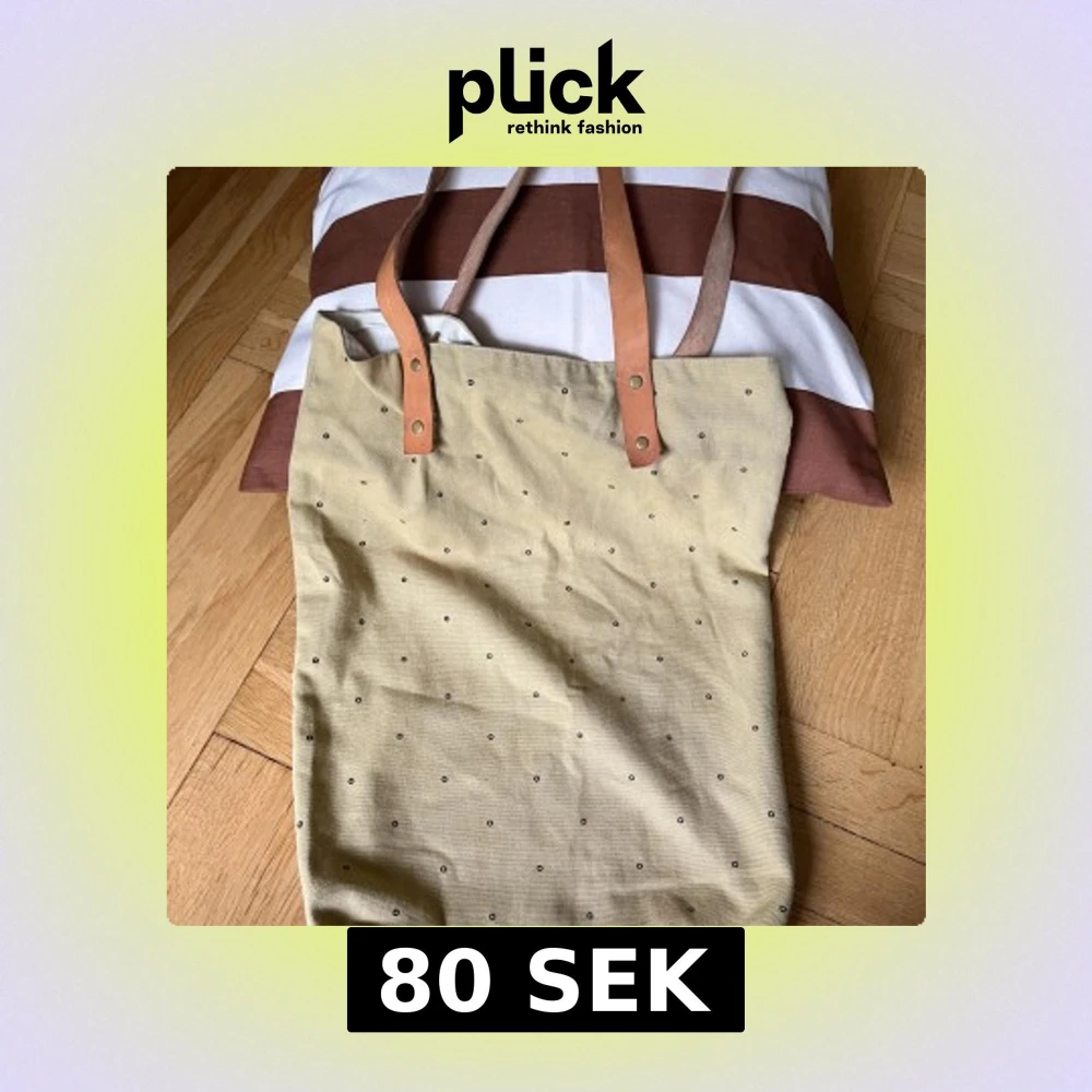 Snygg beige shoppingväska från OYOY med små svarta prickar och rejäla handtag i skinn. Väskan är rymlig och har en stilren design som passar perfekt till vardags. Tillverkad i bomull med detaljer i skinn för en cool kontrast🥰