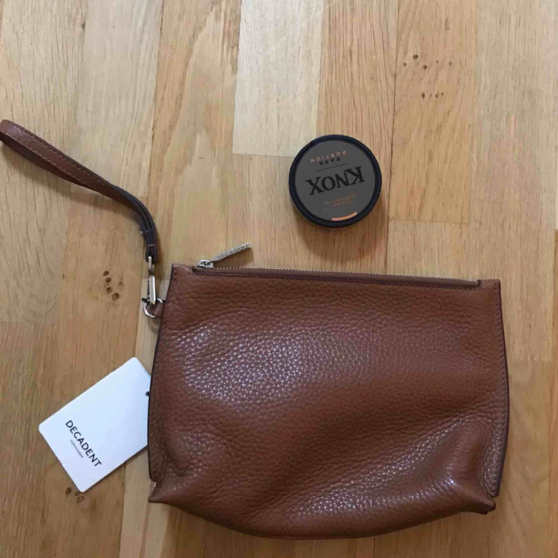 Helt oanvänd handväska från Decadent. Tjockt brunt läder med dragkedja. Nypris 1865kr