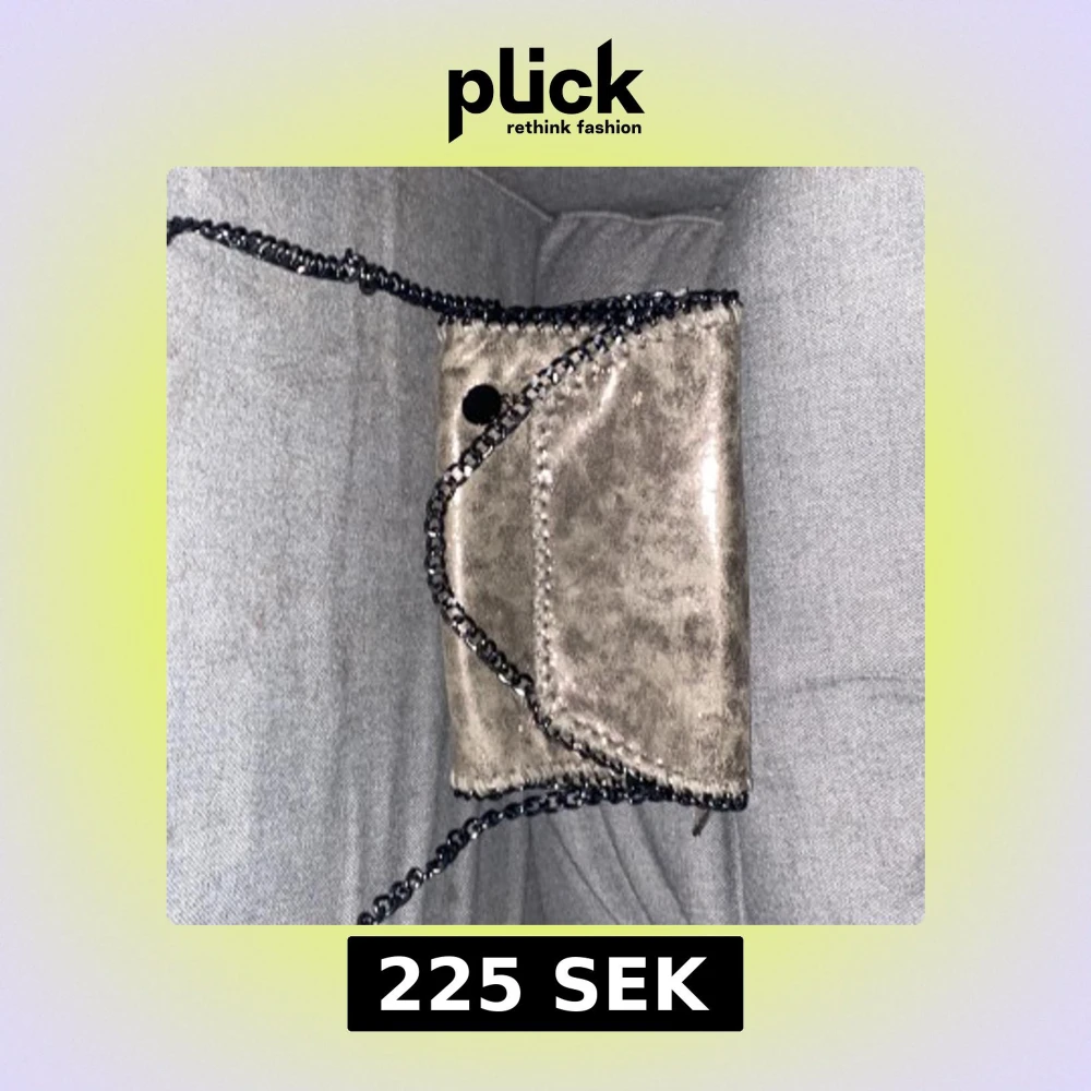 Snygg axelväska i glittrigt silver med svart kedjerem och dekorativa sömmar längs kanterna. Väskan har lockstängning och ett stort fack med dragkedja inuti. Perfekt för dig som vill sticka ut med en cool accessoar.
