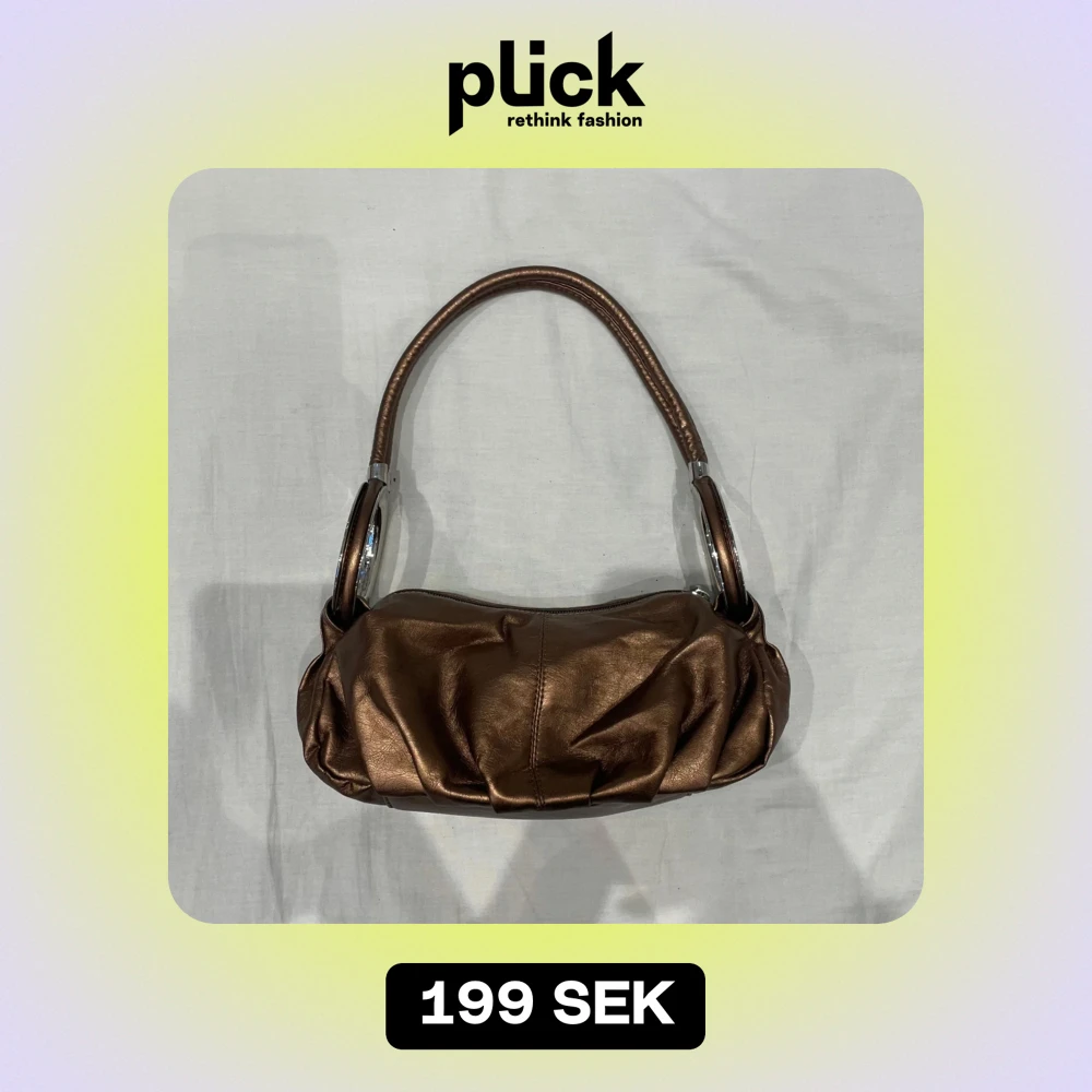 snygg bronsfärgad (brun med lite skimmer i) axelväska i skinn med en stilren design. Väskan har en praktisk dragkedja och en bekväm axelrem. Perfekt för både vardag och fest! Superbra skick och så söt rymmer mobil, lite smink, nycklar typ