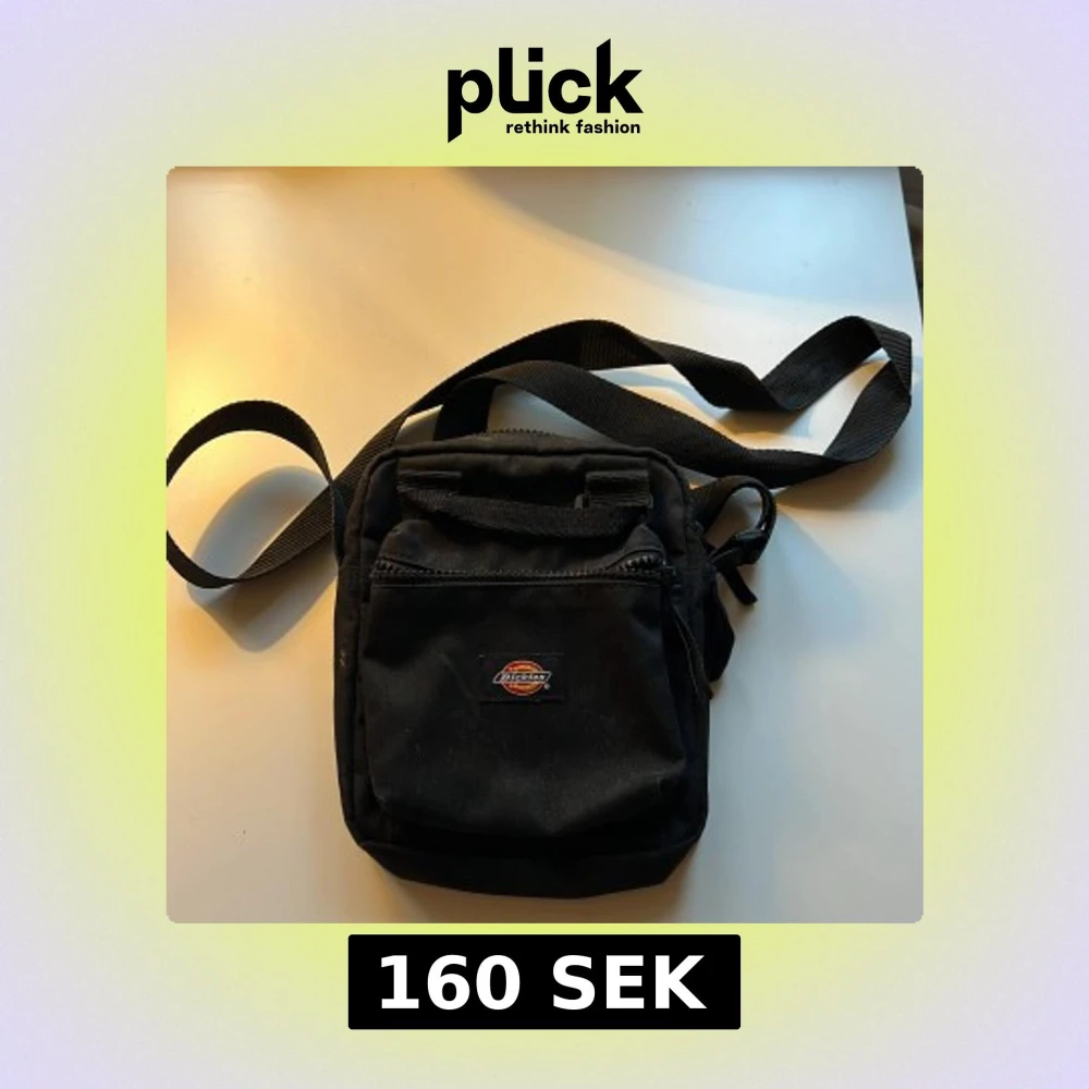Liten axelremsväska från Dickies. Använd men inte trasig. Två fack med dragkedja och små fickor på insidan. Justerbart axelband!