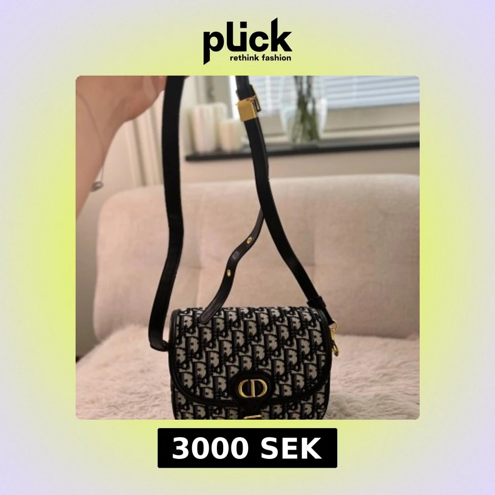 Säljer en Dior 30 Montaigne axelväska i svart och vit canvas med ikoniskt Dior-mönster. Väskan har guldfärgade metalldetaljer, justerbar axelrem i svart läder och ett klassiskt CD-spänne framtill. Perfekt för dig som vill ha en lyxig accessoar med tidlös design.