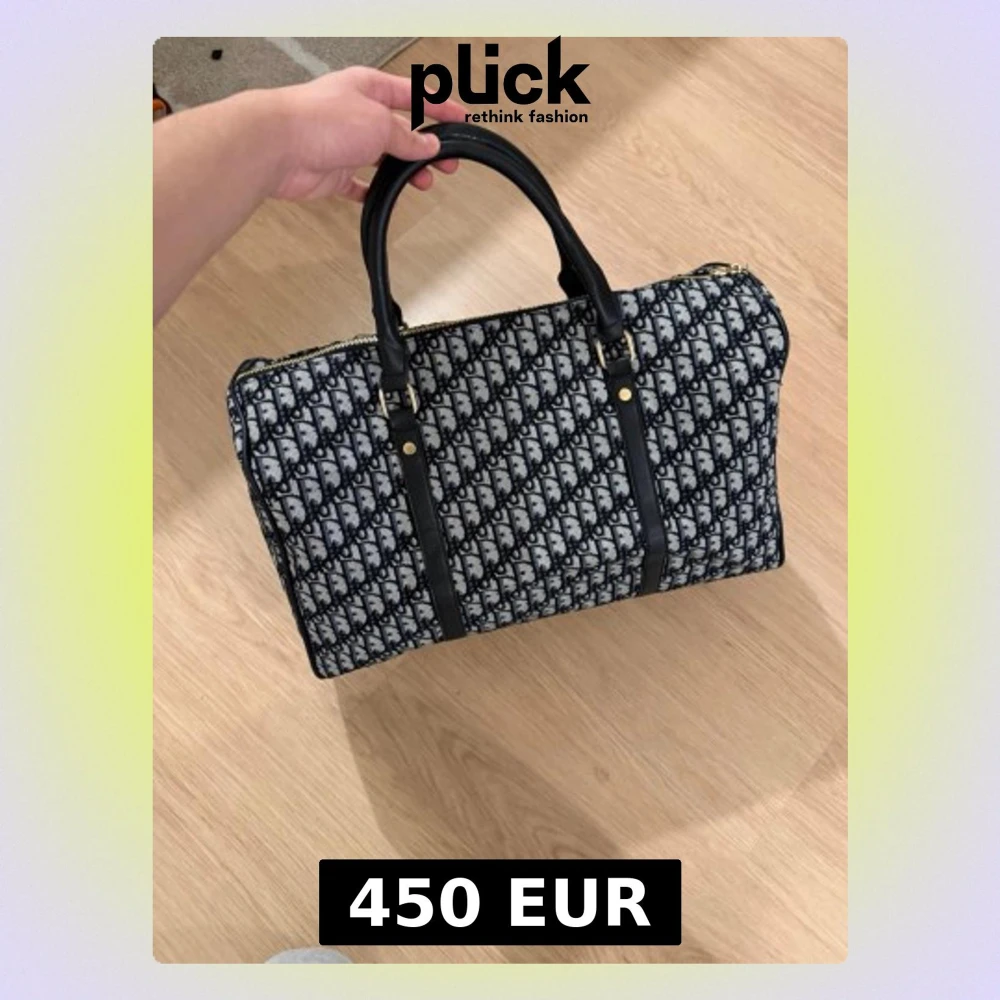 Säljer en snygg Dior axelväska med klassiskt monogrammönster i svart och vitt. Väskan har svarta detaljer i skinn, guldfärgade metalldelar och en bred axelrem med Dior-logga. Insidan är fodrad i rött tyg och har en innerficka. Perfekt för dig som gillar statement-accessoarer.