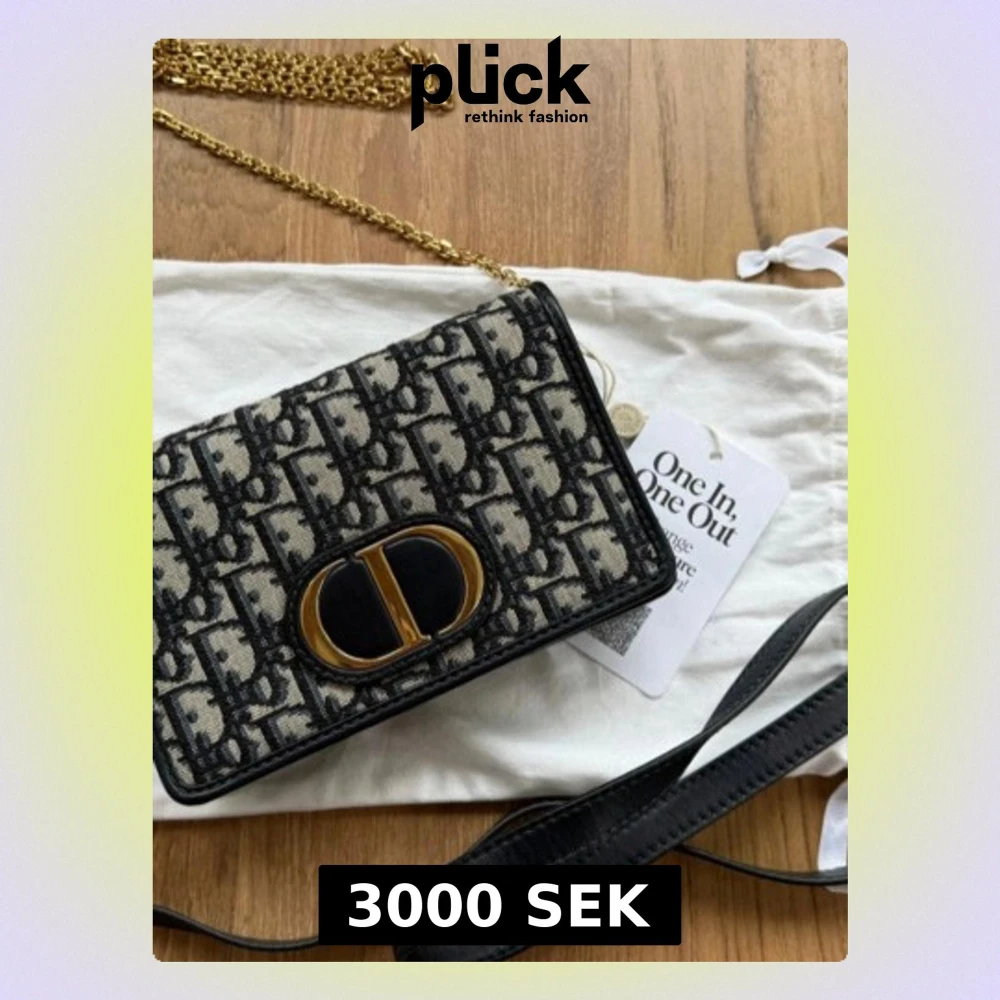 Säljer en snygg axelväska från Dior med klassiskt monogrammönster i svart och beige. Väskan har guldfärgad kedja, magnetlås och detaljer i svart skinn. Framsidan pryds av ett stort CD-emblem i guld och svart. Perfekt storlek för det viktigaste och har flera fack inuti.