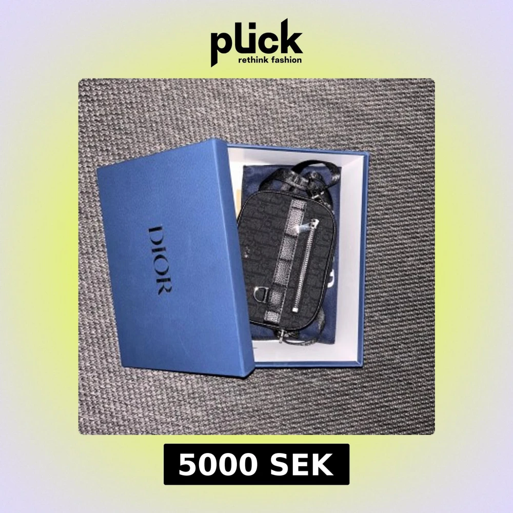 Snygg svart axelväska från Dior med justerbar rem och diskret Dior-mönster över hela väskan. Väskan har en silverfärgad dragkedja framtill, inbyggda kortfack och detaljer i skinn. Perfekt storlek för det viktigaste och levereras med original dustbag och box.
