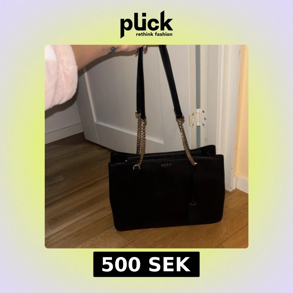 Svart axelväska från DKNY i skinn. Dustbag medföljer. Finns i Stockholm.