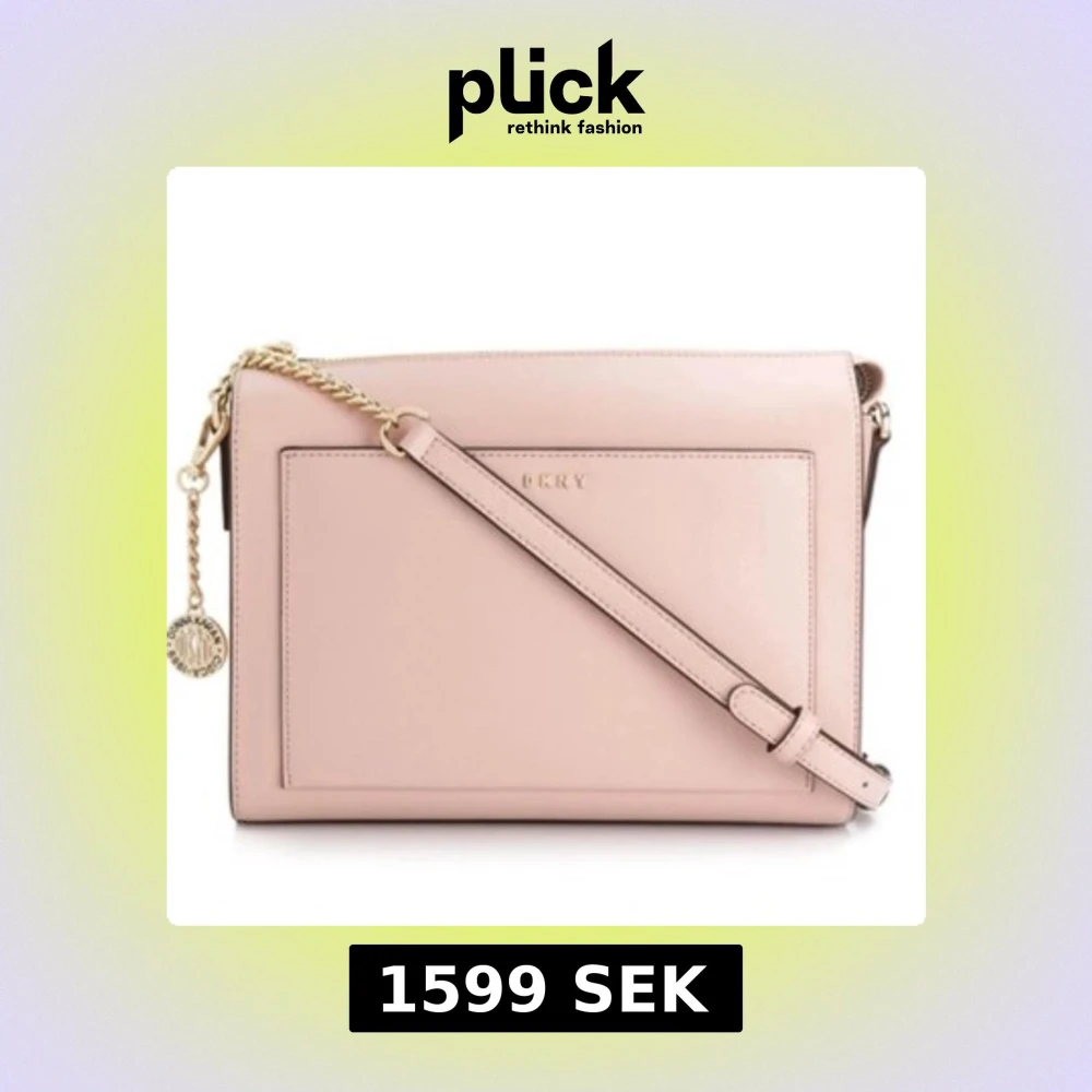 Snygg ljusrosa axelväska från DKNY i slätt skinn med guldfärgade metalldetaljer och justerbar axelrem. Väskan har en praktisk ytterficka, dragkedja upptill och ett stilrent, minimalistiskt uttryck. Perfekt storlek för det viktigaste och en snygg detalj till din outfit.