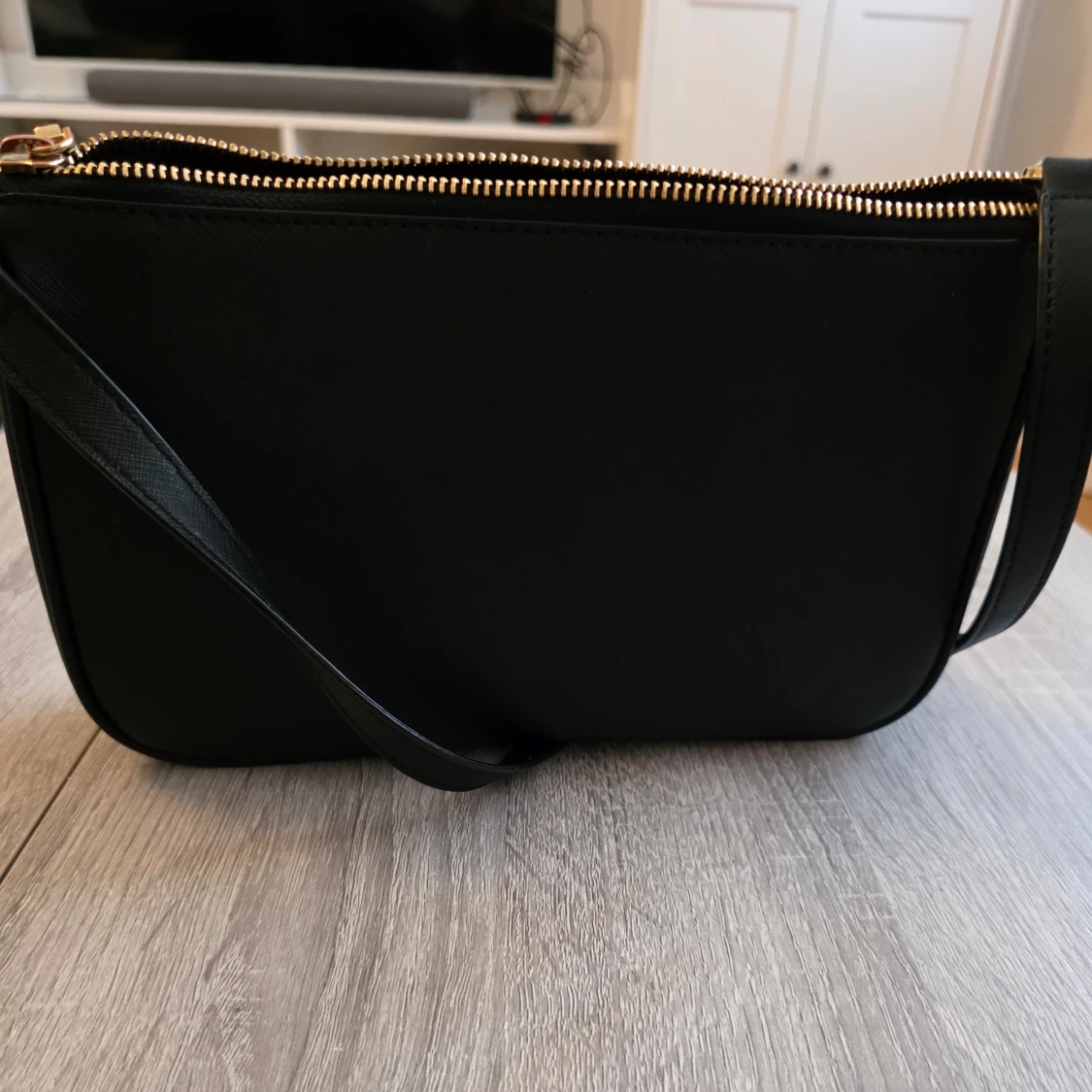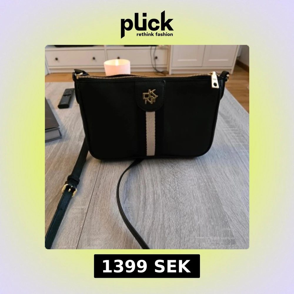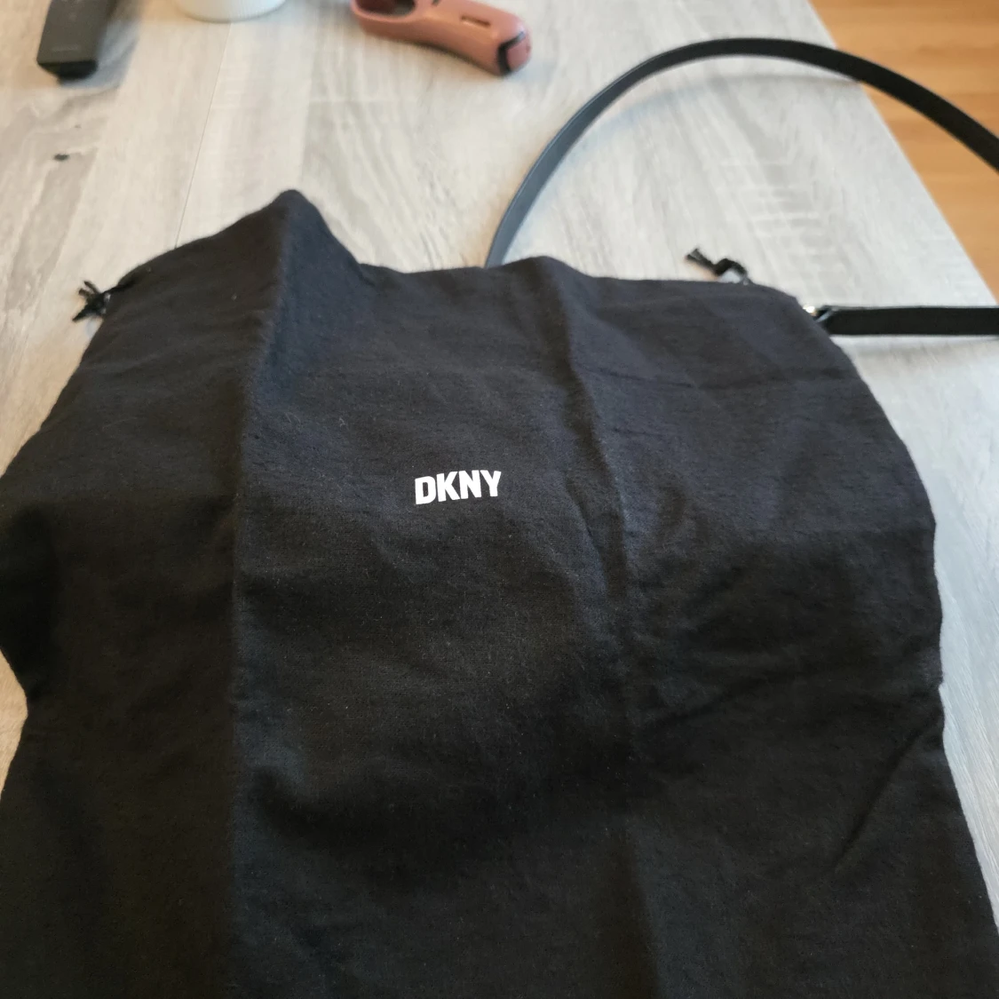 Svart axelväska från DKNY med guldfärgade detaljer och dragkedja. Väskan har en stilren design med en dekorativ rand i mitten och justerbar axelrem. I mycket gott skick samt original dust bag