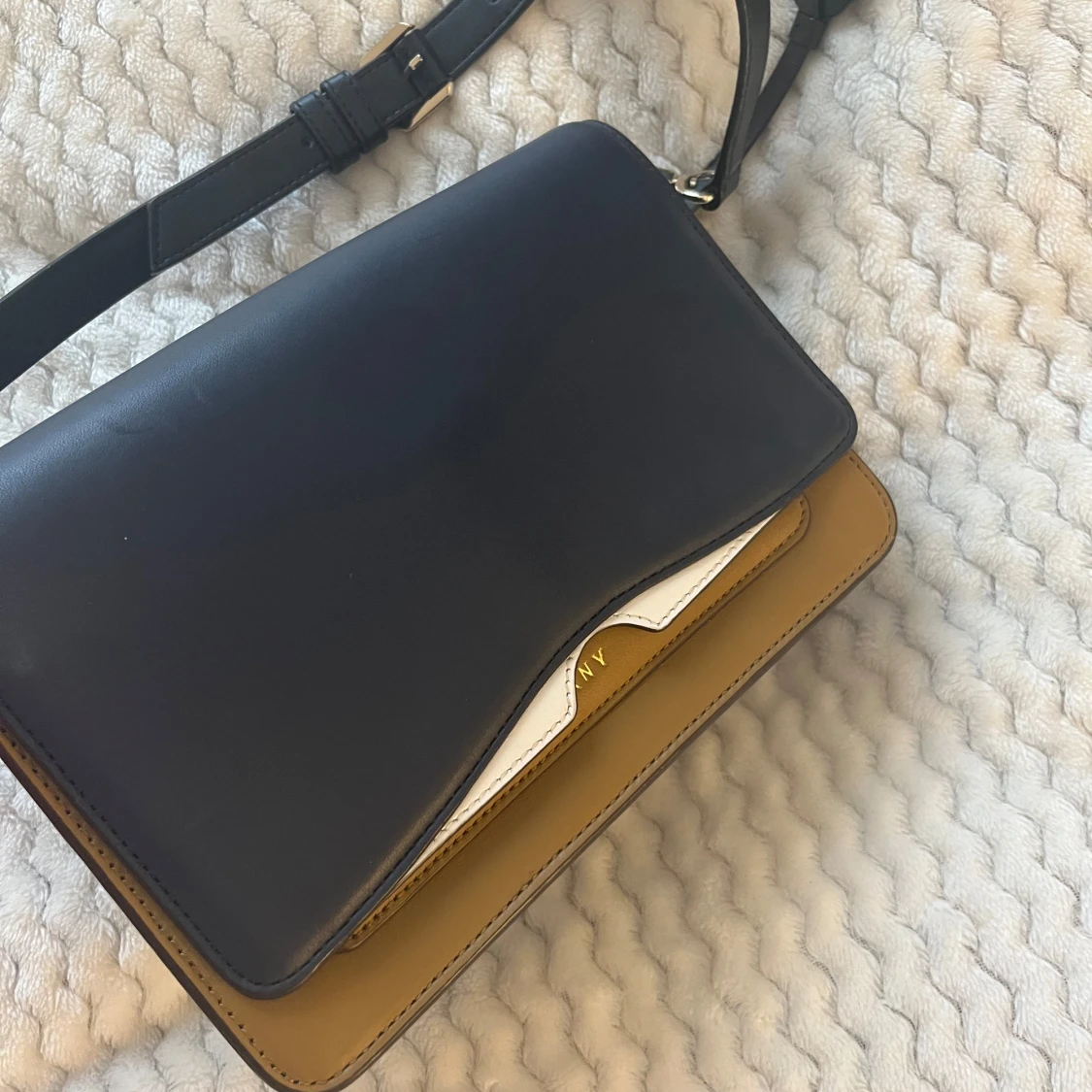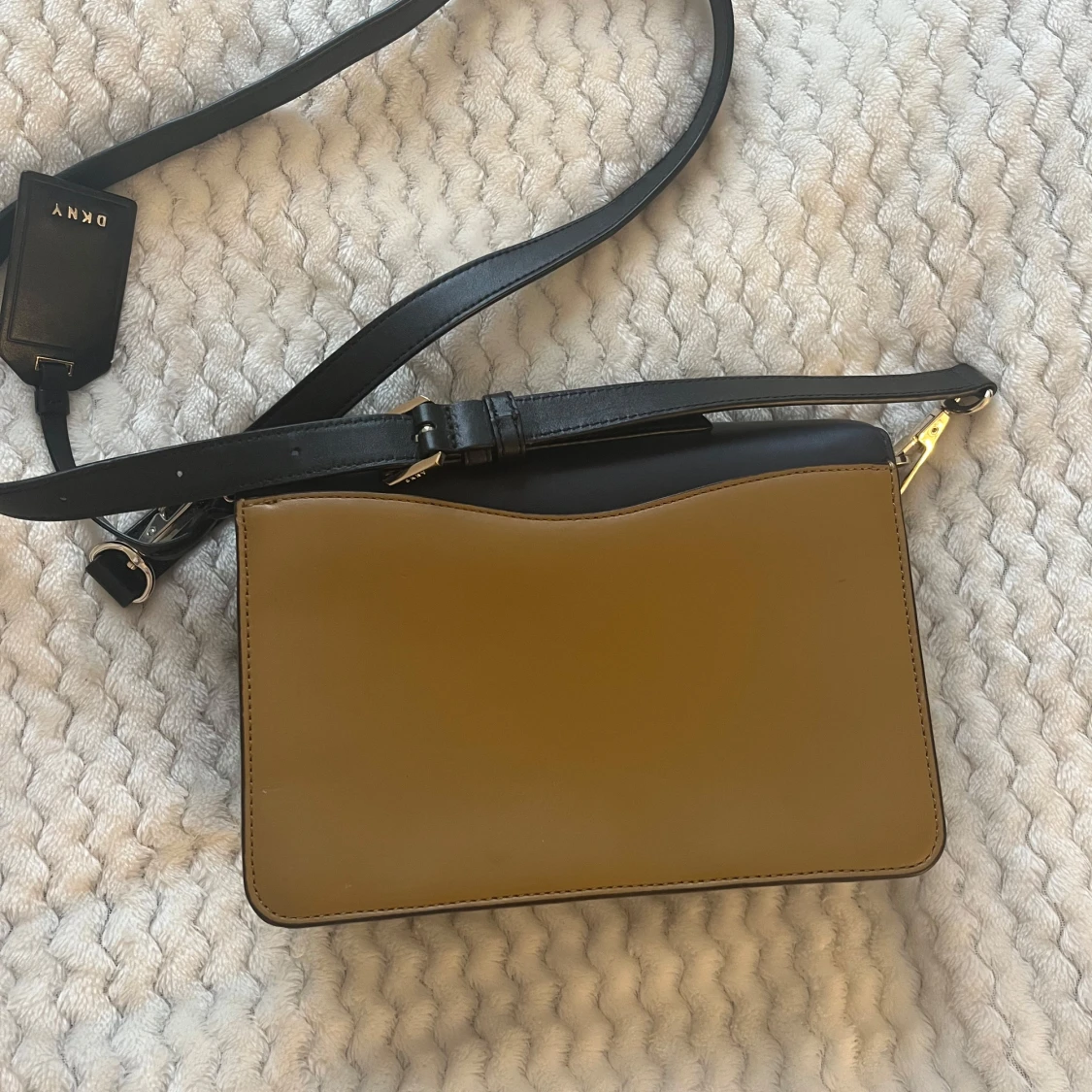 Snygg axelväska från DKNY i en stilren design. Väskan har en kombination av svart och beige färg med en justerbar axelrem. Perfekt för att bära dina nödvändigheter med stil.