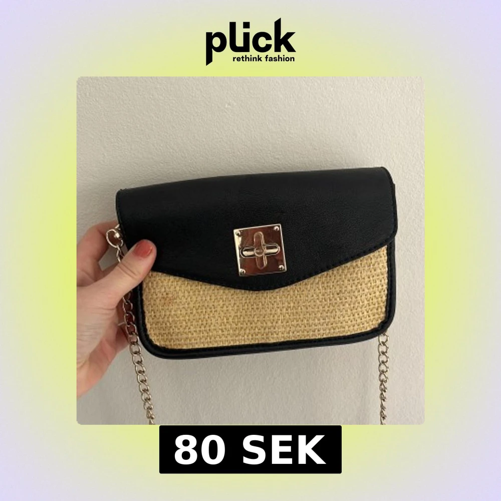Snygg DKNY axelväska i svart och beige med en stilren design. Väskan har en guldfärgad låsdetalj och en kedjerem kombinerad med justerbar axelrem i svart. Perfekt för att ge en touch av elegans till din outfit. Några mindre småskador (se bilder) men inget som stör, därav priset