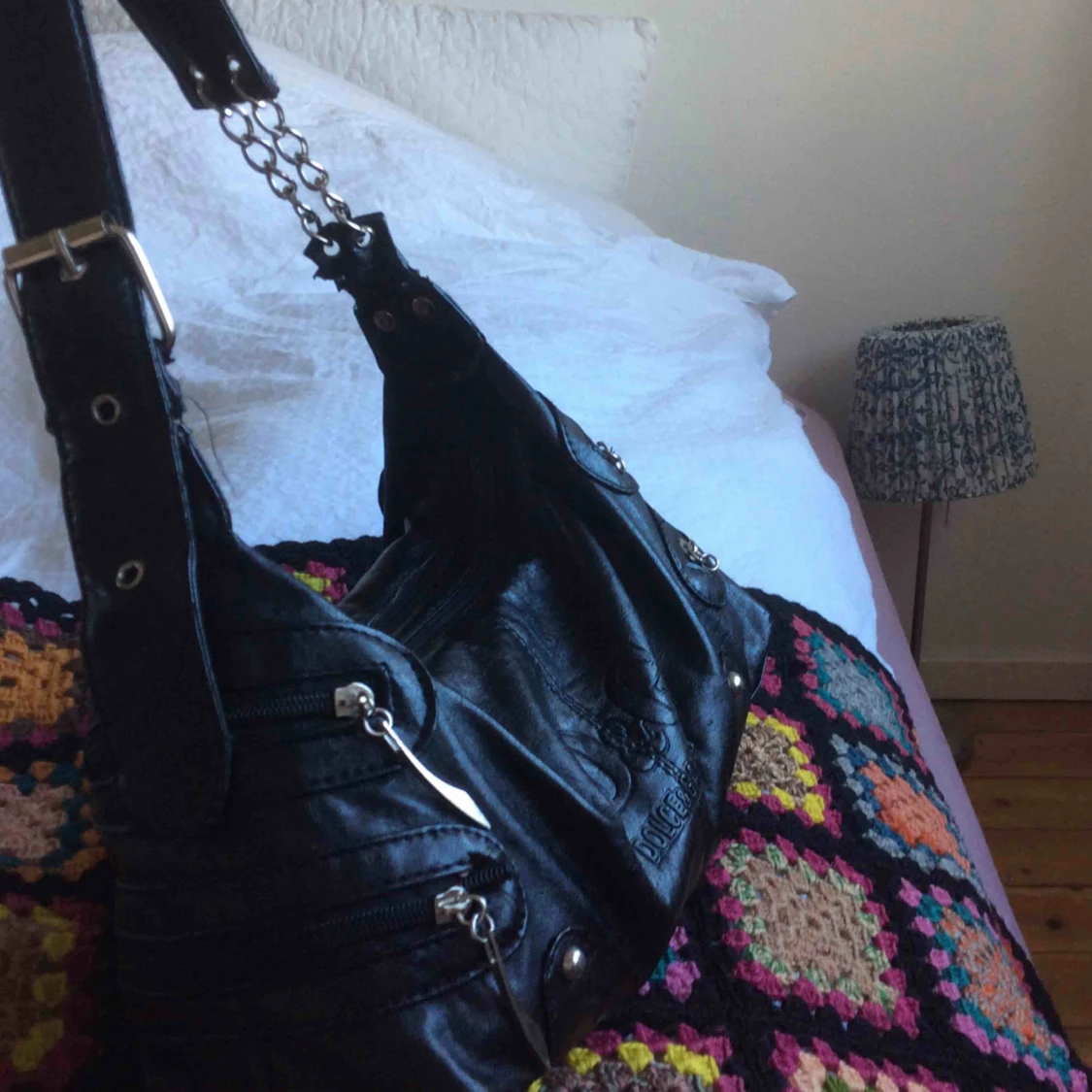 Säljer denna fina väska från humana den är lite sliten på några ställen men relativt stor och rymmer mycket!!