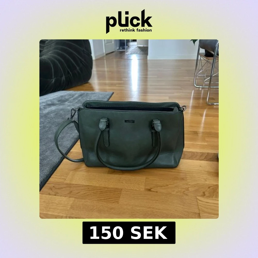 Snygg mörkgrön axelväska från Don Donna i skinnimitation. Väskan har både handtag och justerbar axelrem samt flera fack. Dator och skolböcker får plats!!