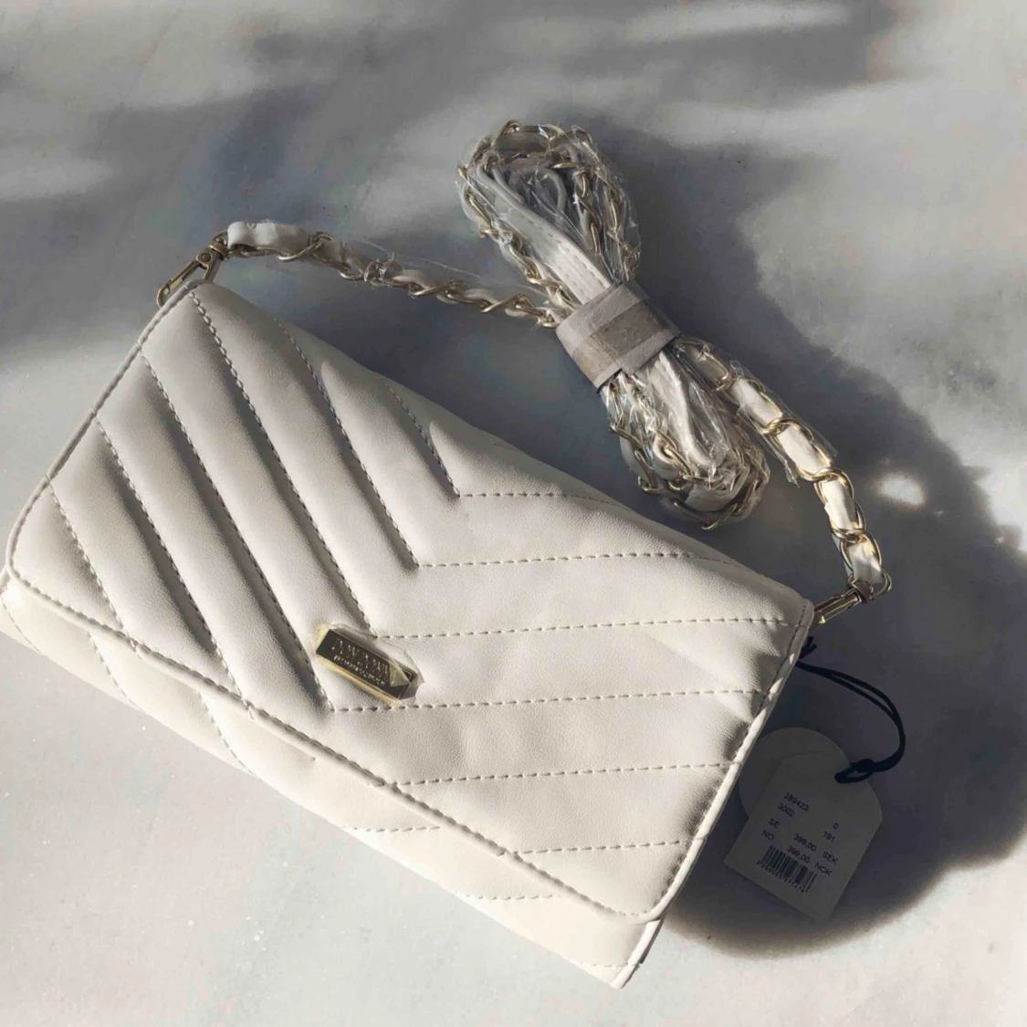 Hely ny Don Donna axelremsväska i vitt/guld med etikett och plasten kvar!