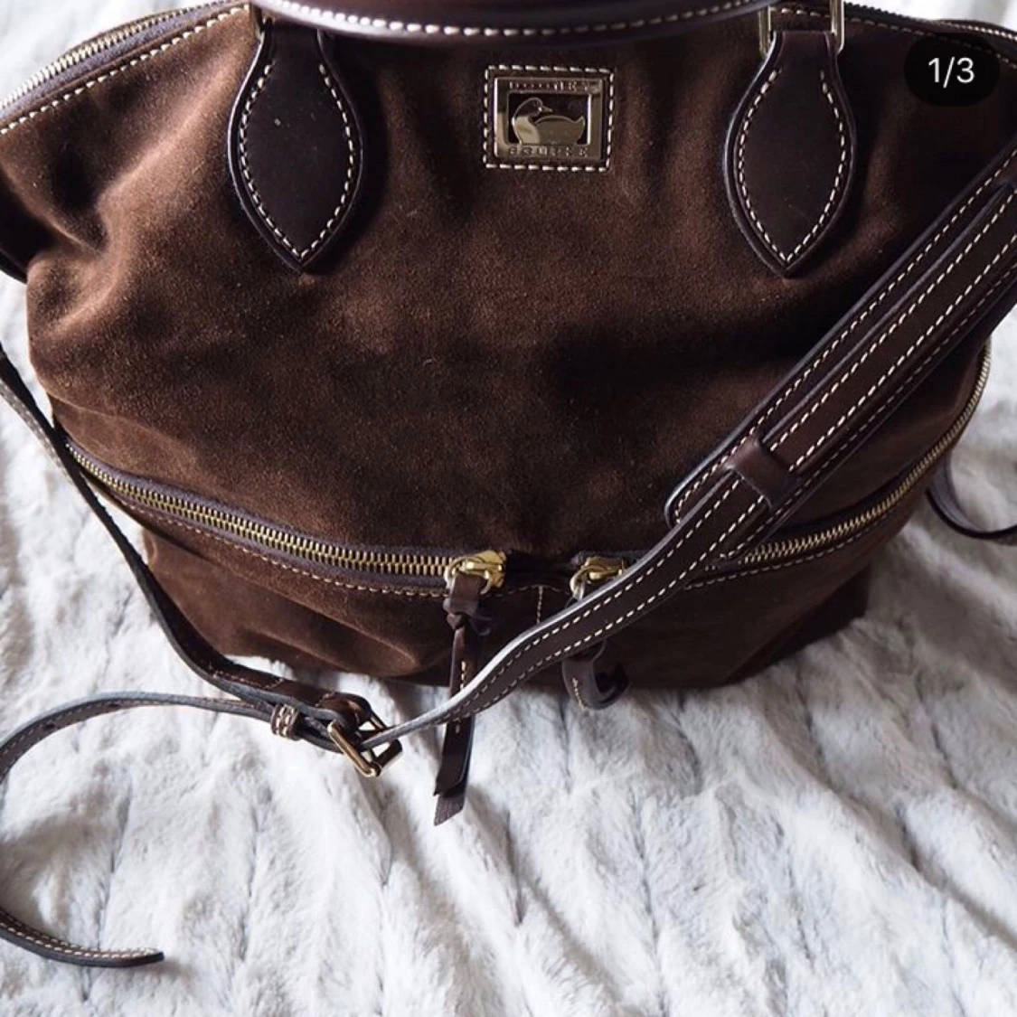 Oanvänd, Superfin väska från Dooney & Burke. Mocka & äkta läder. Aldrig använd. Bra storlek och massa mindre fack. Axelrem & handtag.