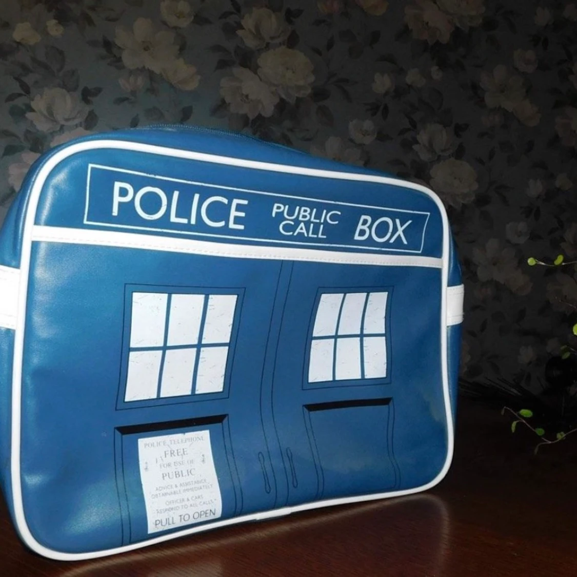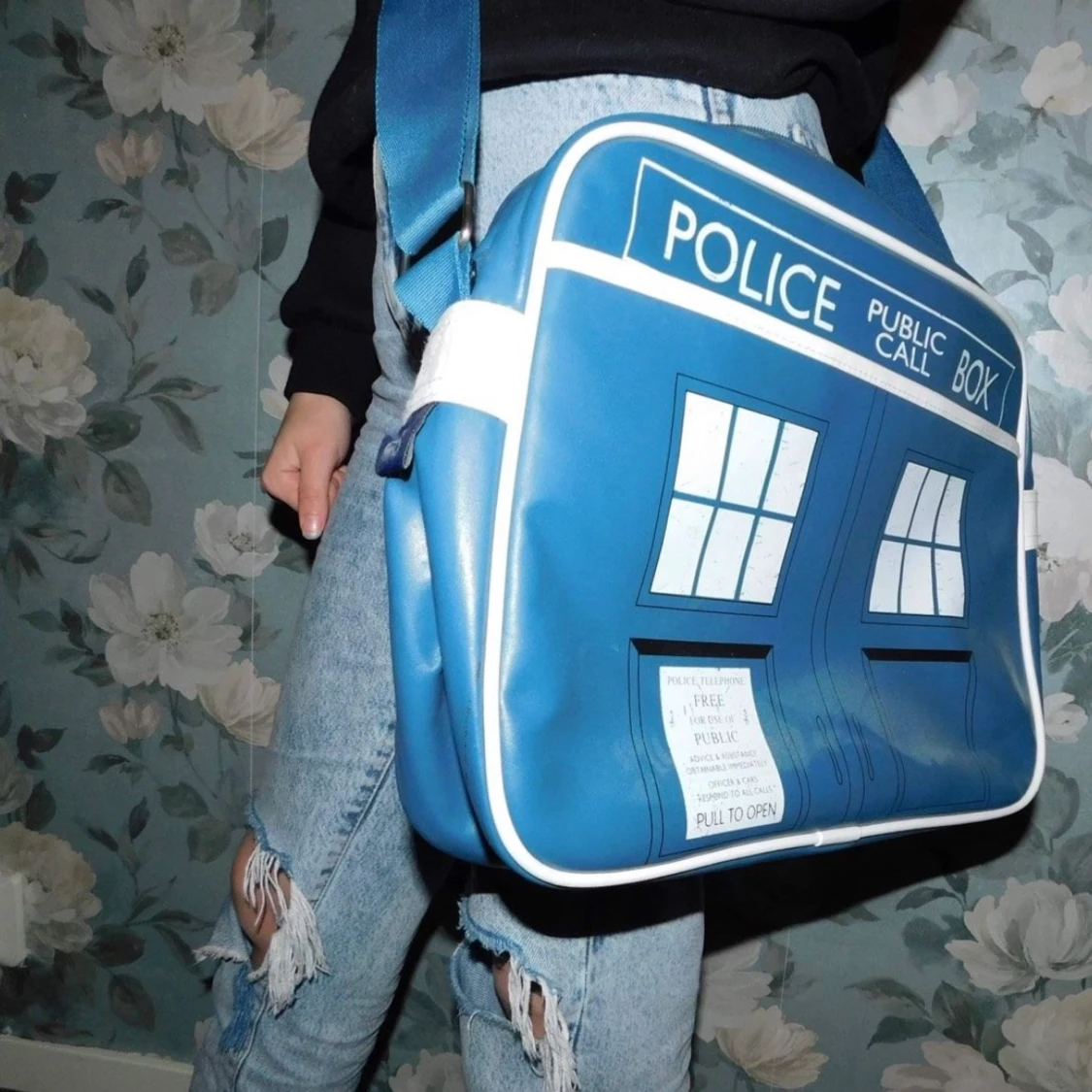 En axelväska jag köpt på Sci-Fi bokhandeln i Göteborg för några år sedan. Väskan föreställer Tardis från Doctor Who och skulle kunna kallas för ett samlarföremål, därför har den stått på en hylla i mitt rum som prydnad under hela tiden jag haft den. Aldrig använt! Priset är inklusive frakt!📦