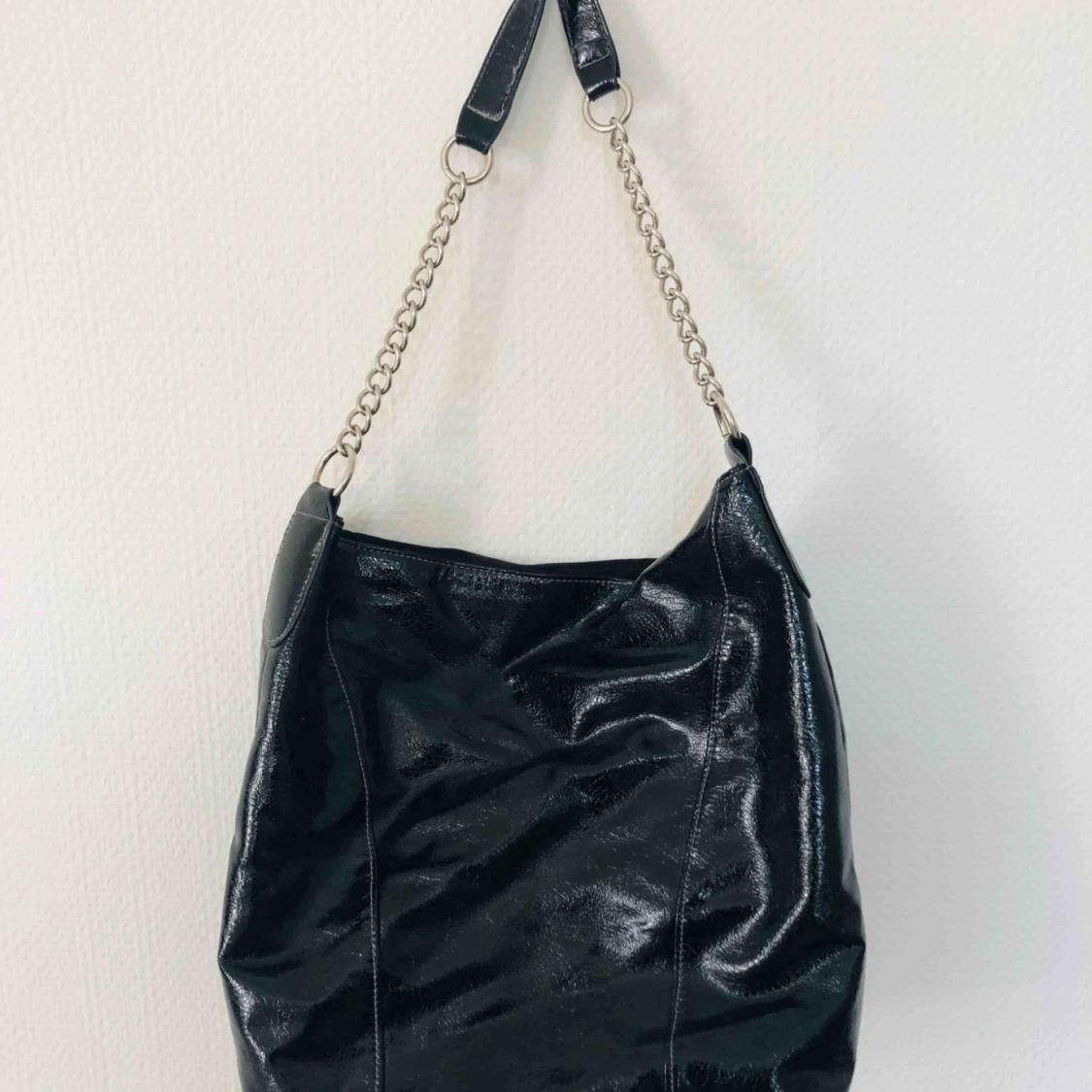 Väska i fint skick. Stängs genom att knäppa en knapp i mitten.