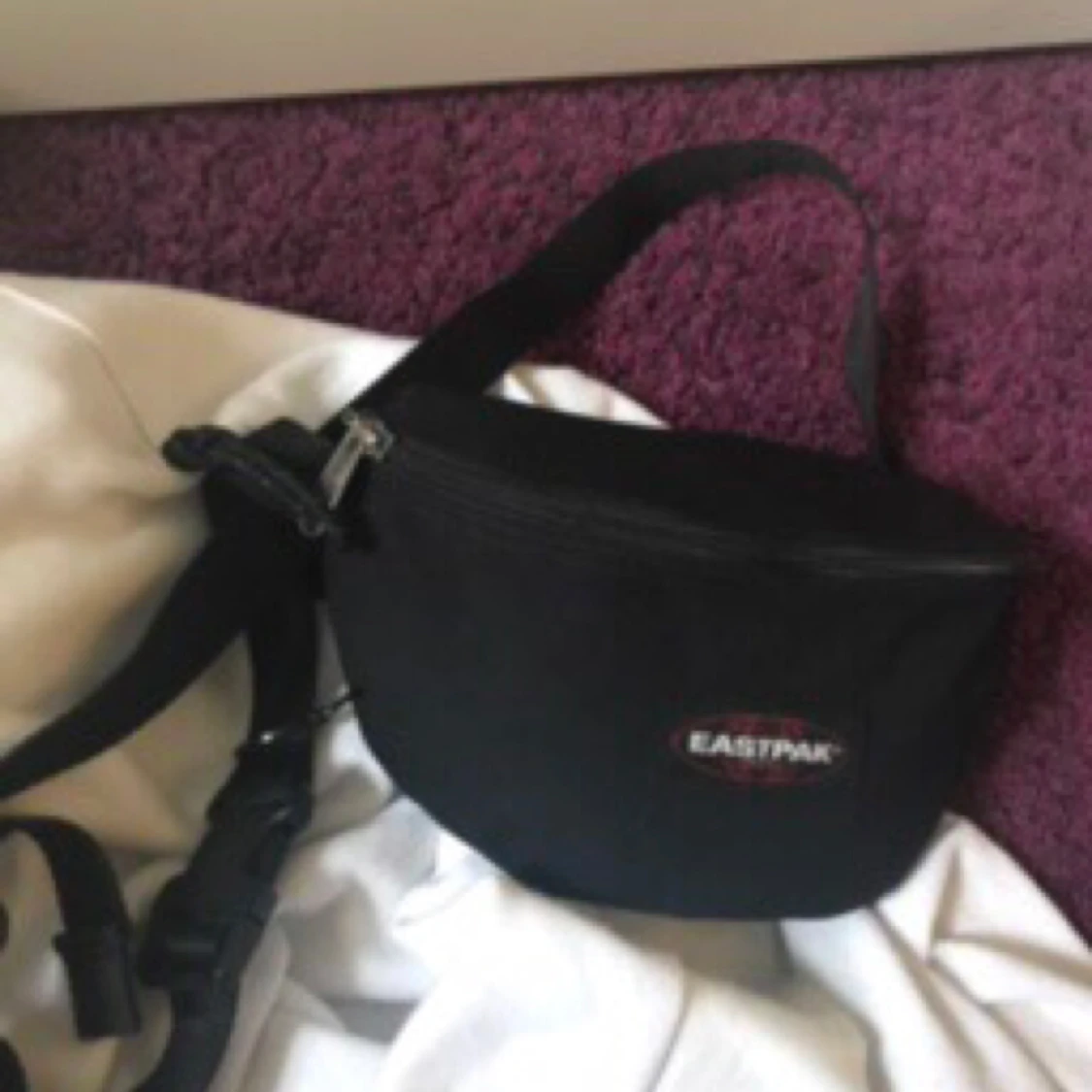 svart eastpack köpt pp urban outfitters! nypris: 250kr, knappt använd - så i bra skick! storleken på bandet går att reglera enkelt kan mötas upp i stockholm eller frakta (köparen står för frakten)