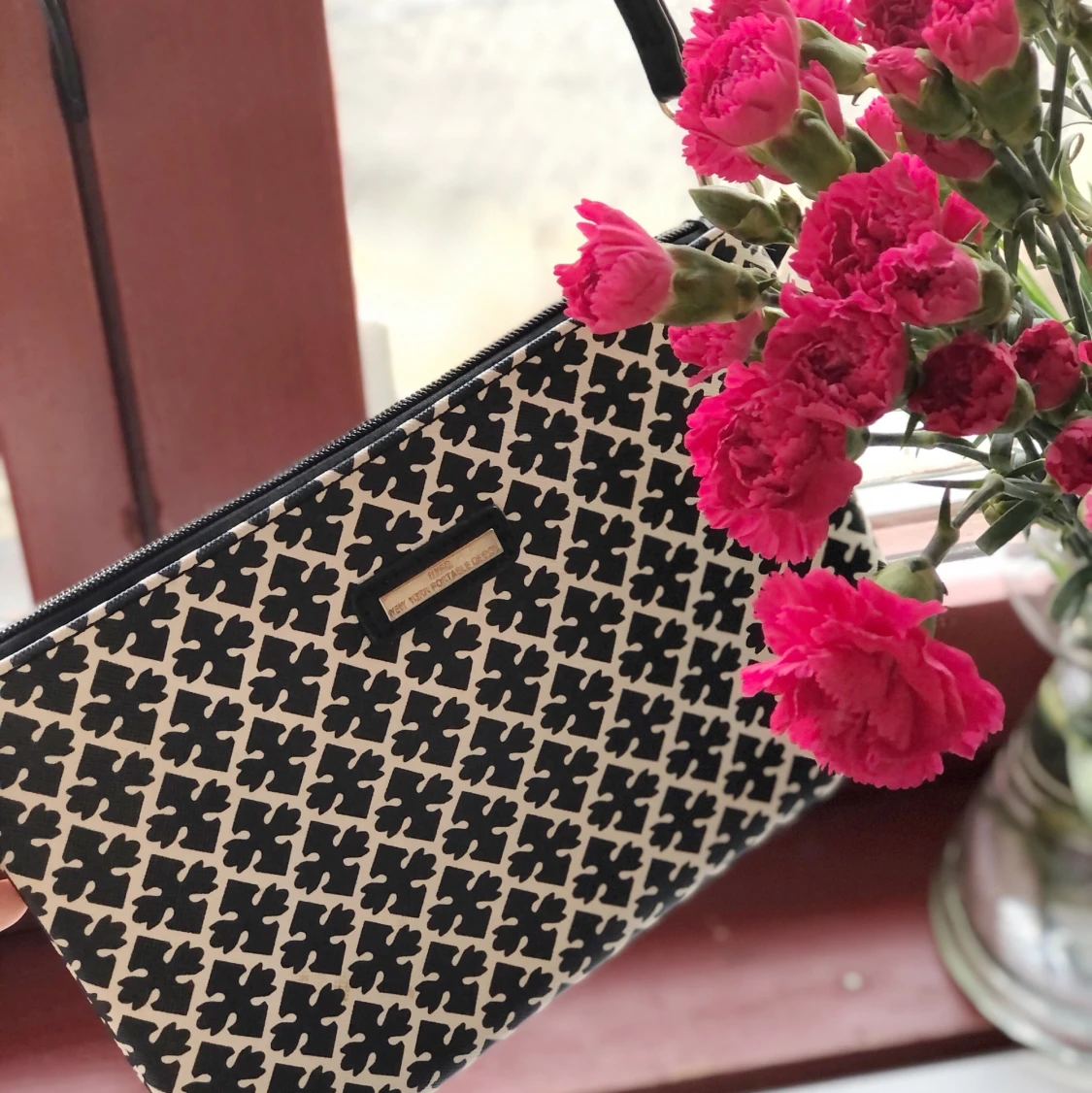 svart / vit mönstrad väska med gulddetaljer! kan justera bandets längd efter önskan! Leverans: kunden står för kostnaden
