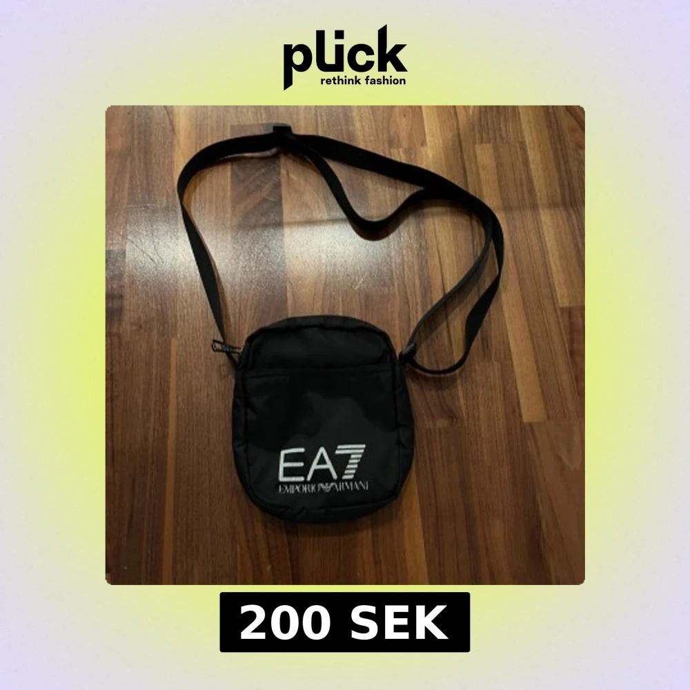 Snygg svart axelväska från Emporio Armani med justerbar rem och logotypen EA7 framtill. Perfekt för att bära med sig det viktigaste på ett stilfullt sätt.