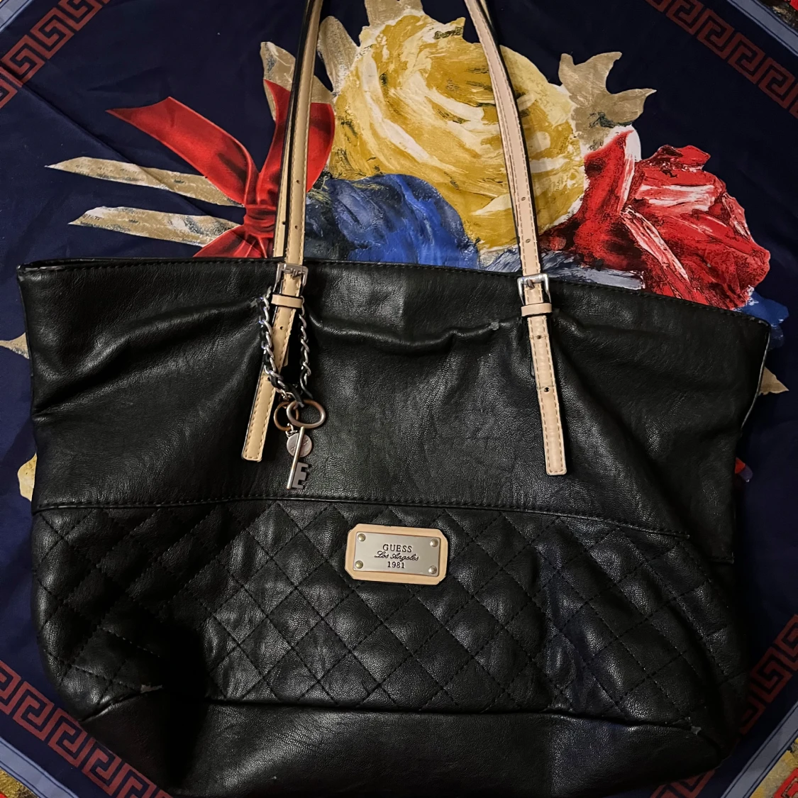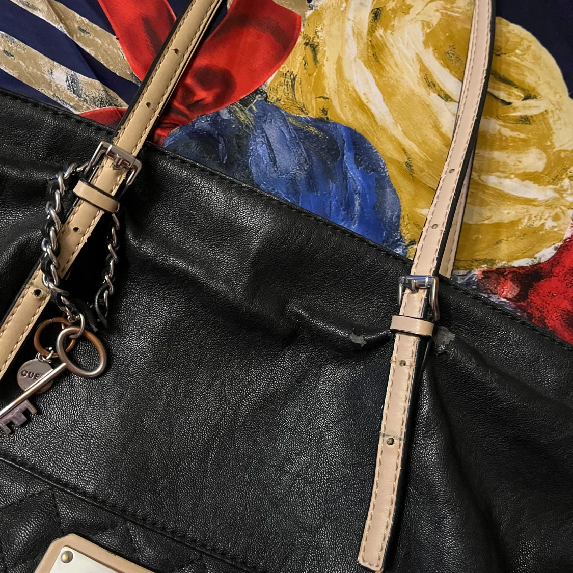 En svart axelväska från Guess