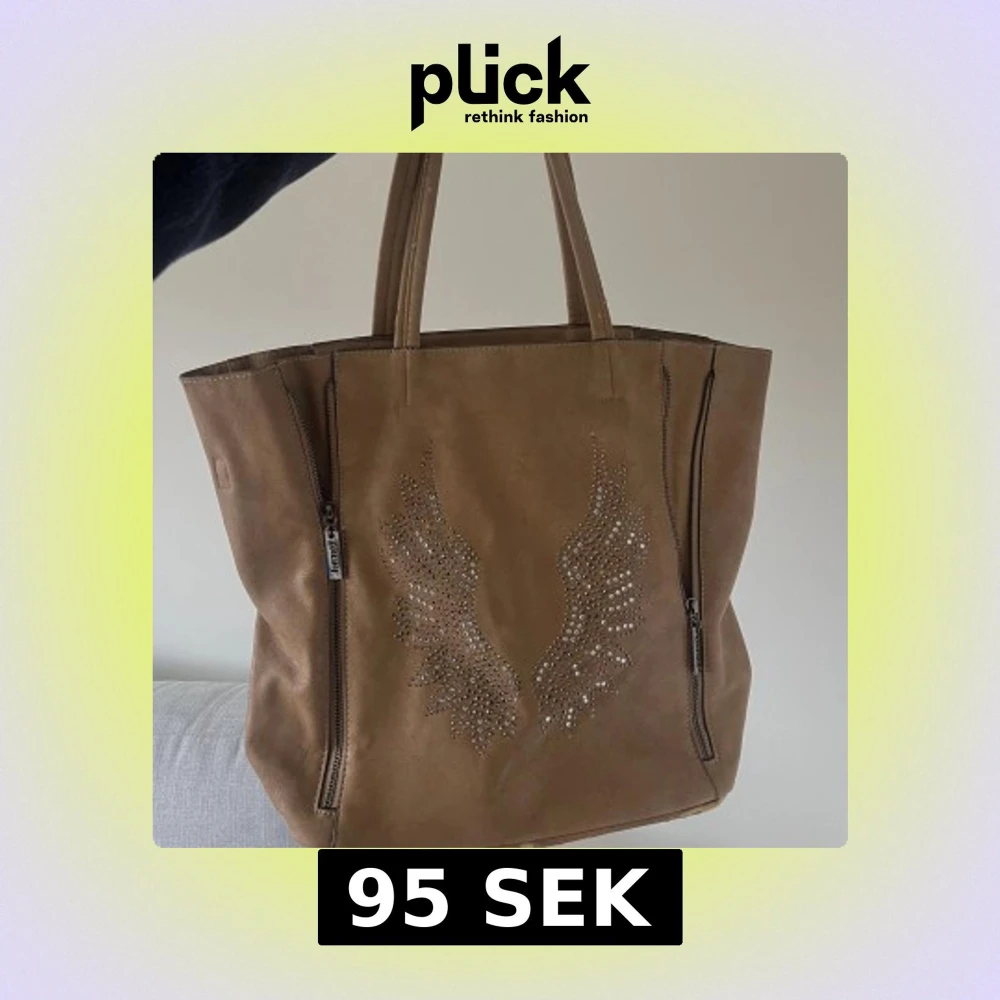 Snyggaste bruna eternel väskan med änglavingar på❣️använt skick så finns vissa slitningar (tex bild 5), därav pris!! ord pris 500-600 kr