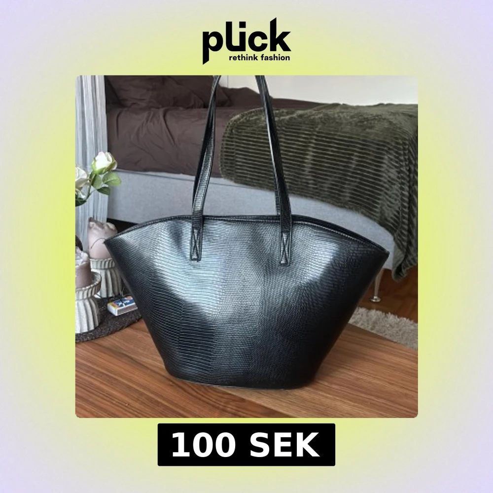 Stilren svart shoppingväska från Even&Odd med reptilmönstrad yta och långa handtag. Väskan är rymlig och har ett magnetlås samt innerfack med dragkedja. Perfekt för dig som vill ha plats för allt och ändå se chic ut.
