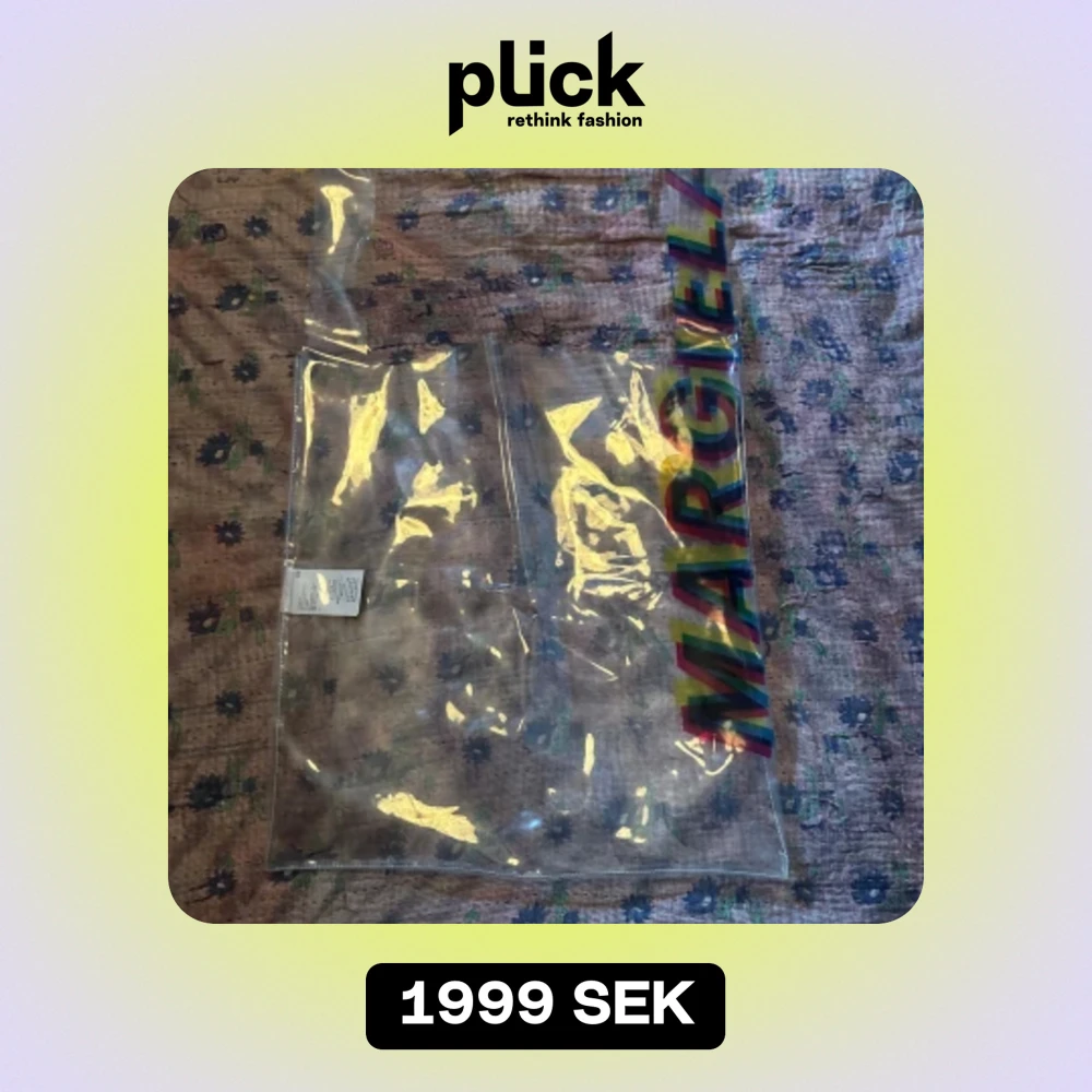 Säljer nu en jövligt cool tote av maison margiela. Den är genomskinlig av något plast liknande material. Ett riktigt statement för den som e riktigt cool faktiskt en jobbig sak att sälja för den är verkligen cool men jag behöver pengarna. Bra skick
