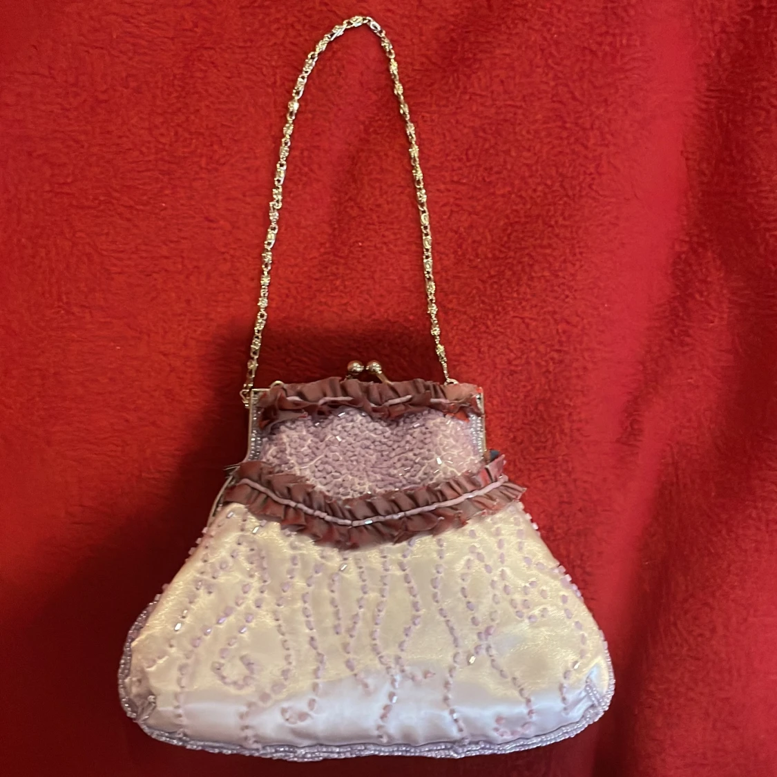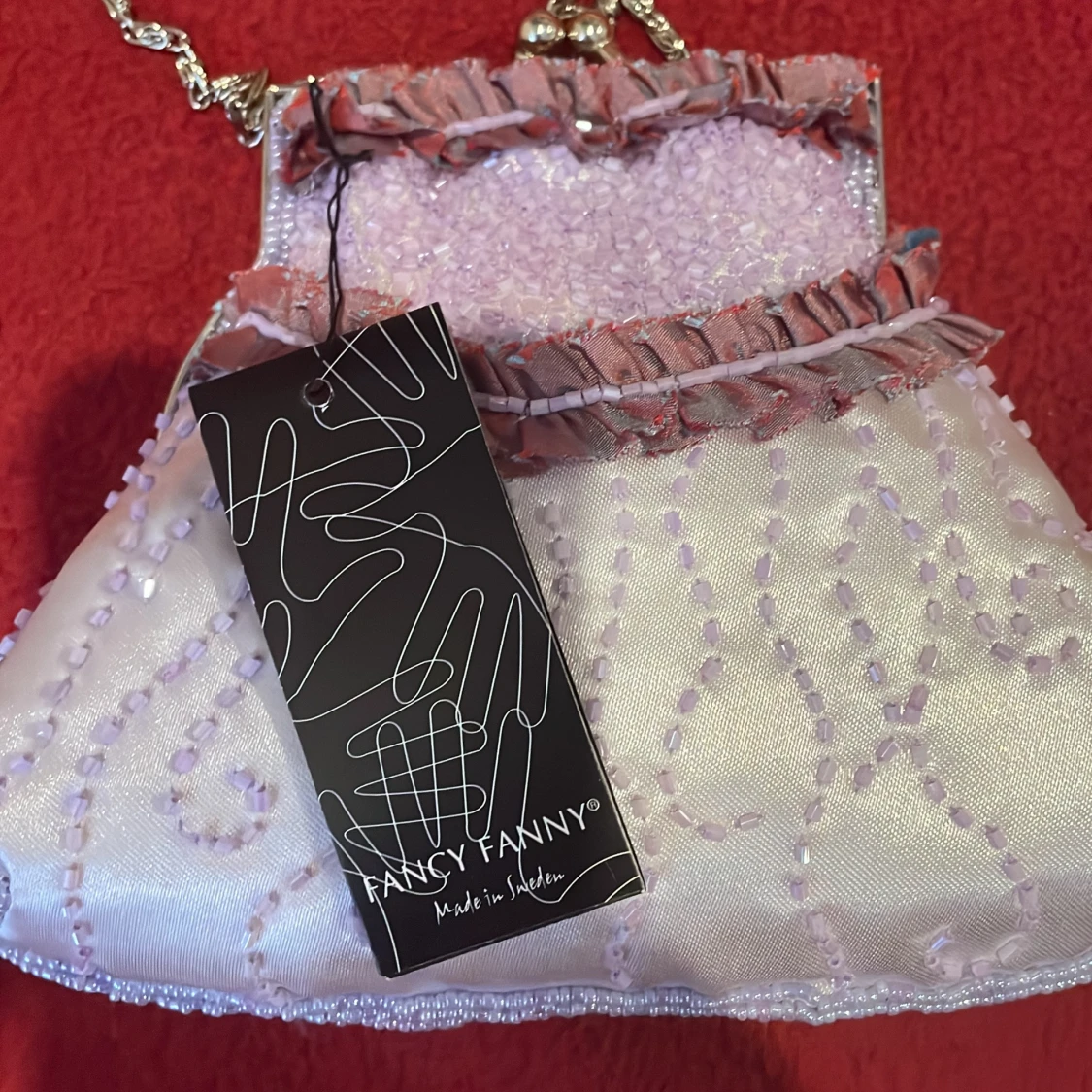 Väldigt gullig och fin väska som man kan inte får plats med jättemycket men det som man brukar behöva. Helt ny! Aldrig använd. Väldigt fina detaljer. Lappen sitter på fortfarande. Ett inre fack i väskan. Passar perfekt till många olika färger!❤️