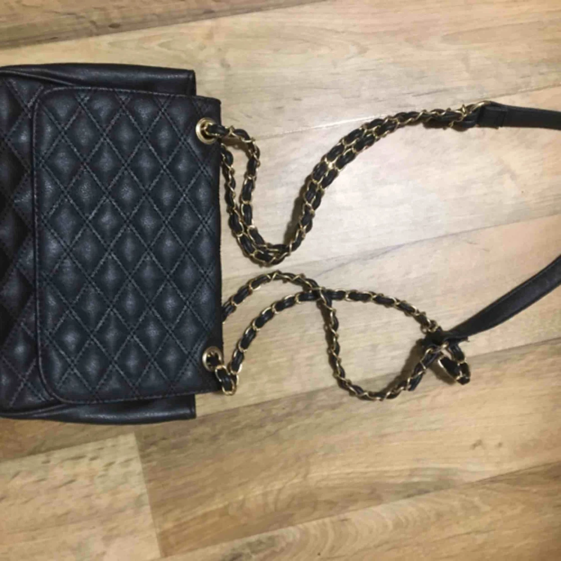 Säljer min väska som jag har haft en gång i nån timme, svart med guldkedja. Kan mötas upp i Karlstad annars står köparen för frakt