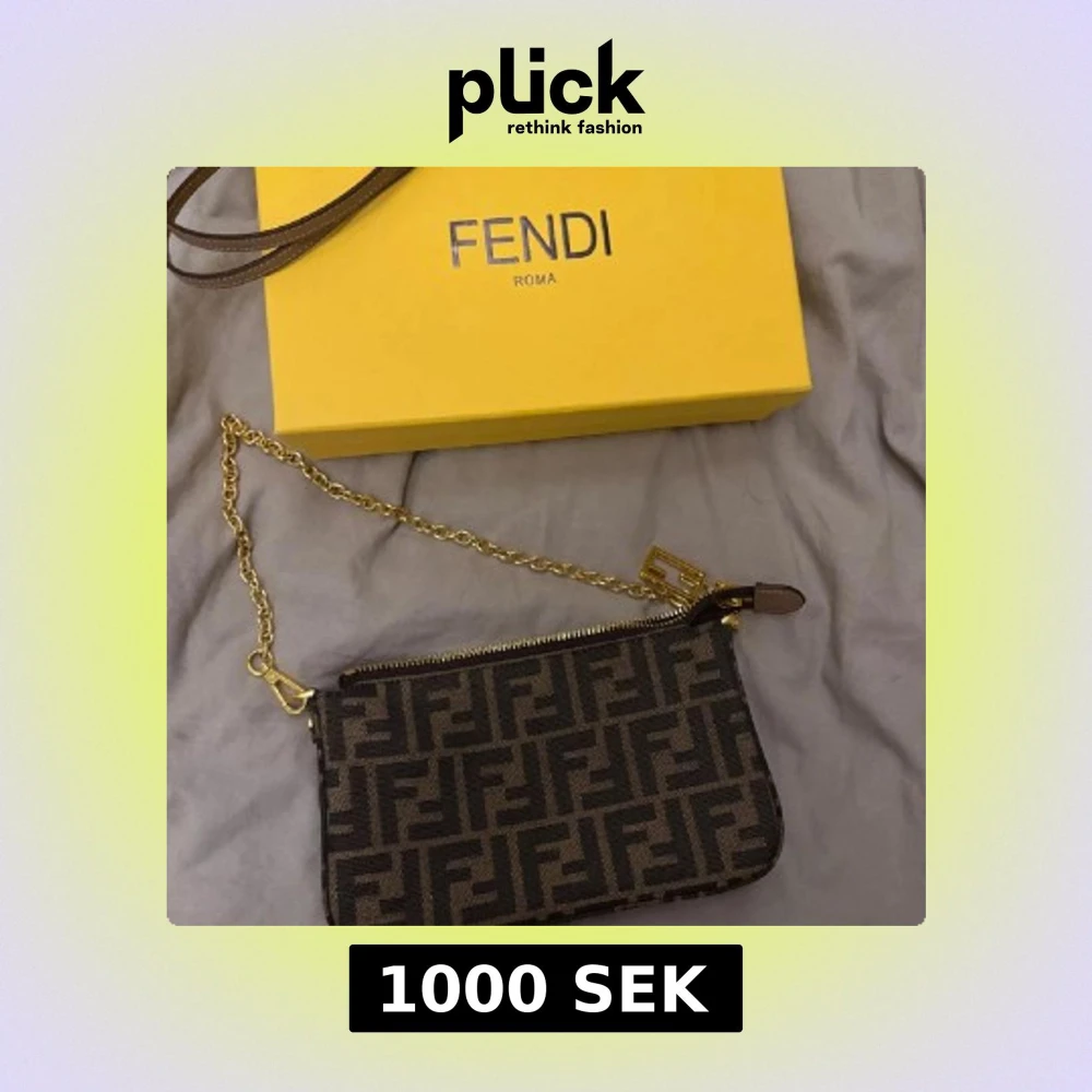 Snygg axelväska från Fendi med ikoniskt FF-mönster i mörkbrunt och svart. Väskan har guldfärgad kedja, dragkedja och detaljer i skinn. Perfekt storlek för det viktigaste och har en innerficka. Kommer med originalkartong och tag.