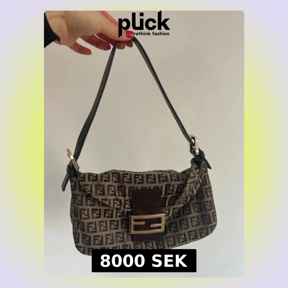 AxelväKa från Fendi med FF-logomönster i brunt och beige. Väskan har ett justerbart axelband i mörkbrunt skinn, guldfärgat spänne och detaljer i skinn. Insidan har dragkedja och Fendi-logga på metalldetaljer. Knappt använd, köpt på Collectorscage i Köpenhamn som har äkthetsgaranti för ca 10 000 kr.