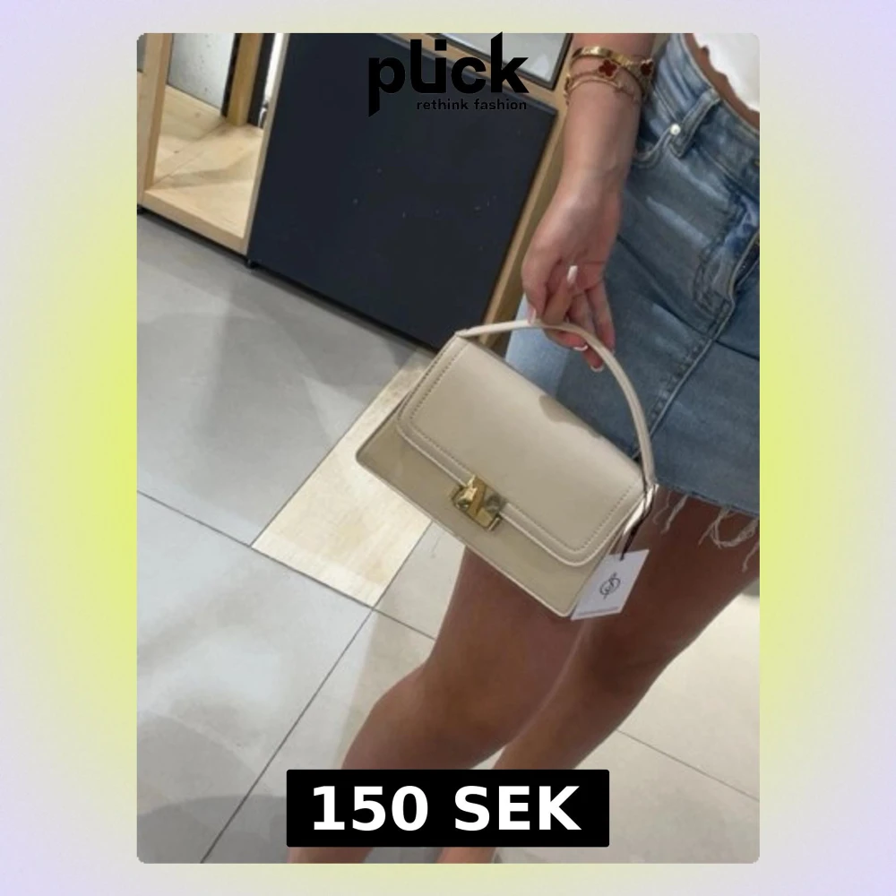 Snygg beige handväska i stilren design med guldfärgat spänne och kedja. Väskan har både ett handtag och en axelrem i kedja. Nypris 200-250 och använd 1 gång