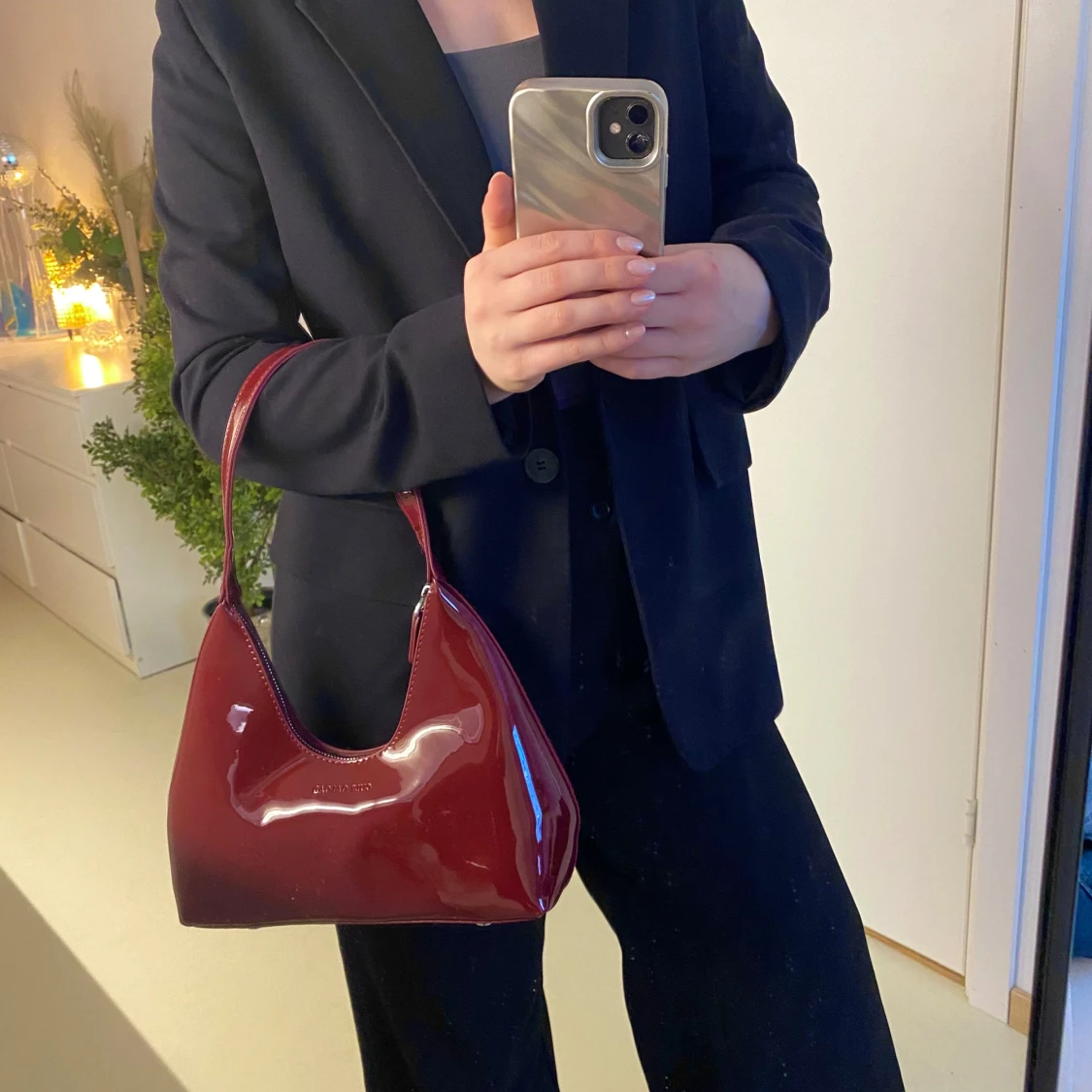 Supersnygg vinröd axelväska perfekt för fest eller vardags! 🍒Rymmer plånboken, sminket och hörlurarna! Oanvänd 🫶🏼