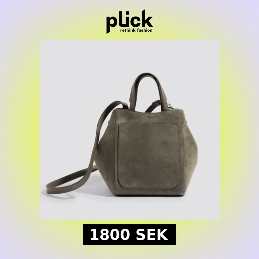 Snygg grön handväska i mocka från Filippa K. Väskan har en stilren design med en praktisk ytterficka och bekväma handtag. Läder och mocka. 2 innefickor. Det långa axelremmen saknas. Storlek 25x25