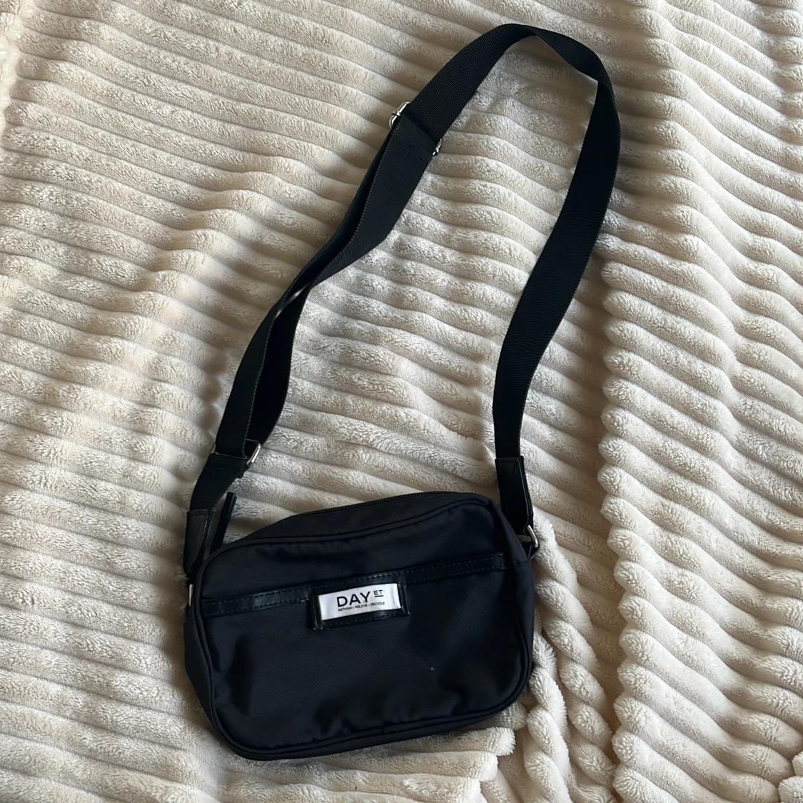 Snygg svart axelväska från DAY ET med justerbar rem och dragkedja upptill. Väskan har en stilren design med logga framtill samt ett till fack som stängs med en magnet. Såå fin för alla tillfällen!! Pris går att diskuteras och om du har några frågor är det bara att skriva💗