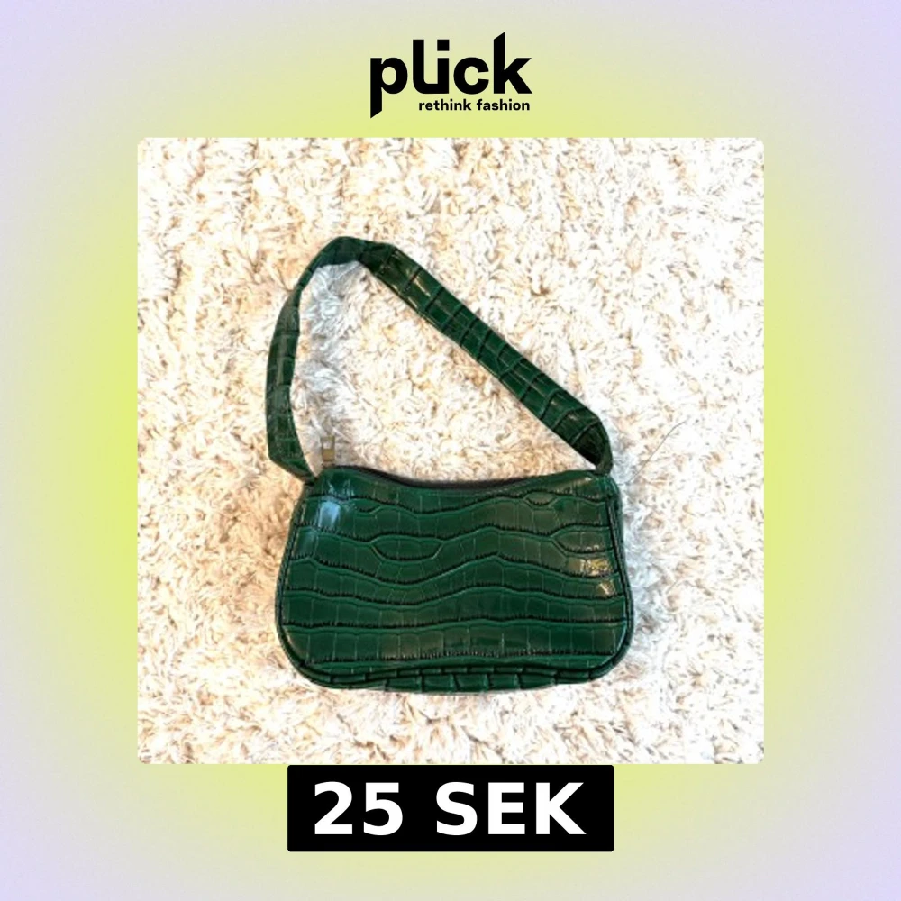 Grön axelväska i krokodilpräglad syntet