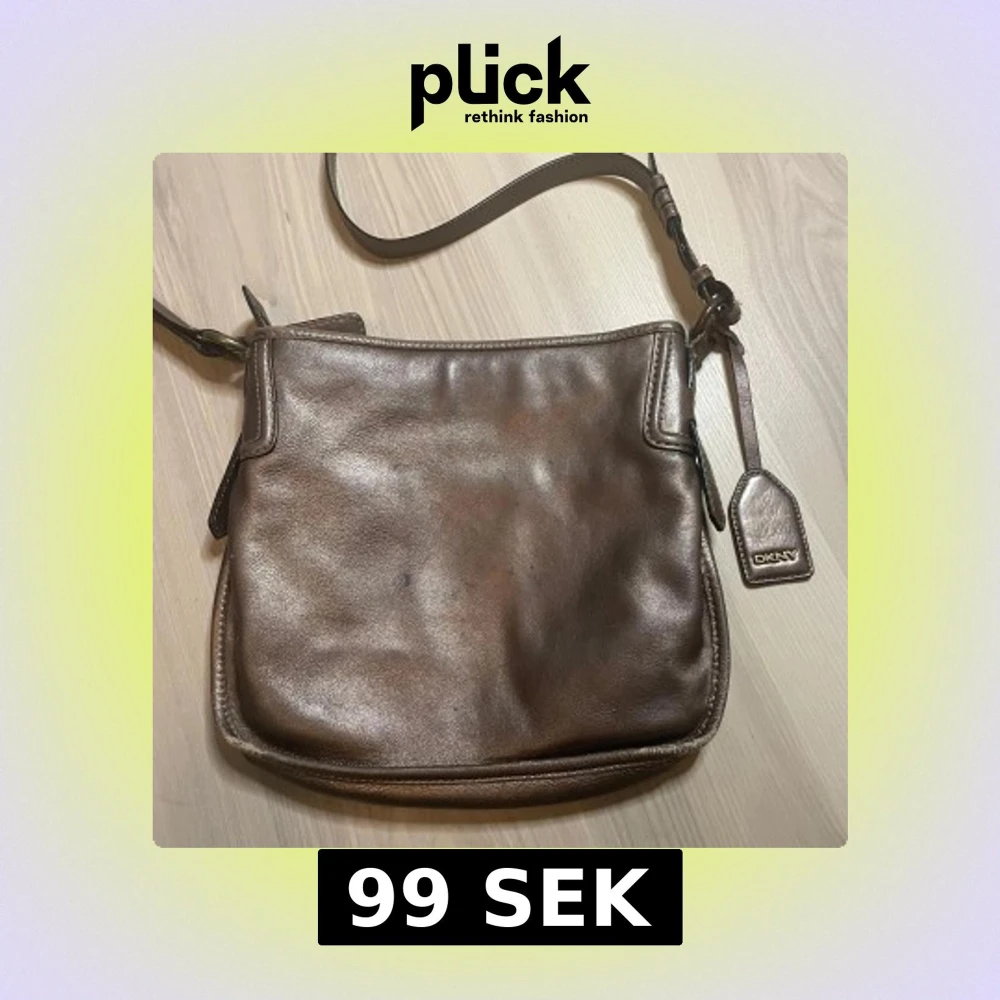Snygg axelväska från DKNY i bronsfärgat skinn med justerbar axelrem och dragkedja upptill. Väskan har ett rymligt huvudfack med innerfickor och klassisk DKNY-tag på sidan. Perfekt för dig som vill ha en stilren och praktisk accessoar.