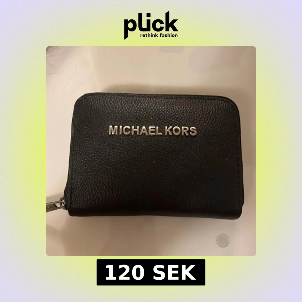 Snygg svart plånbok från Michael Kors i skinn med silverfärgad dragkedja och logga framtill. Plånboken har flera fack för kort och mynt, samt ett innerfack med dragkedja. Perfekt storlek för att ha med sig överallt.