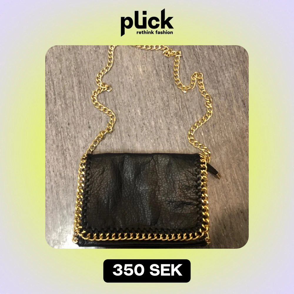 Snygg svart tiamo väska i skinn med guldkedja. Liknar Stella McCartney väskorna. Köpt på plick för 400 men använd max 3 gånger av mig. Kom privat för fler bilder🥰