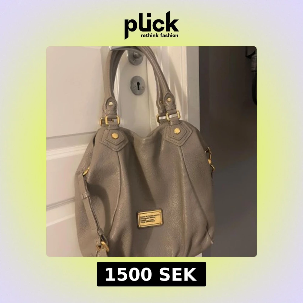 Snygg grå handväska från Marc by Marc Jacobs med guld detaljer. Jättefin väska men har ett få tal slitningar i botten och en repa på loggan, se sista bilden💕Ny pris ca 4000/5000 kr vet ej exakt då det var en present