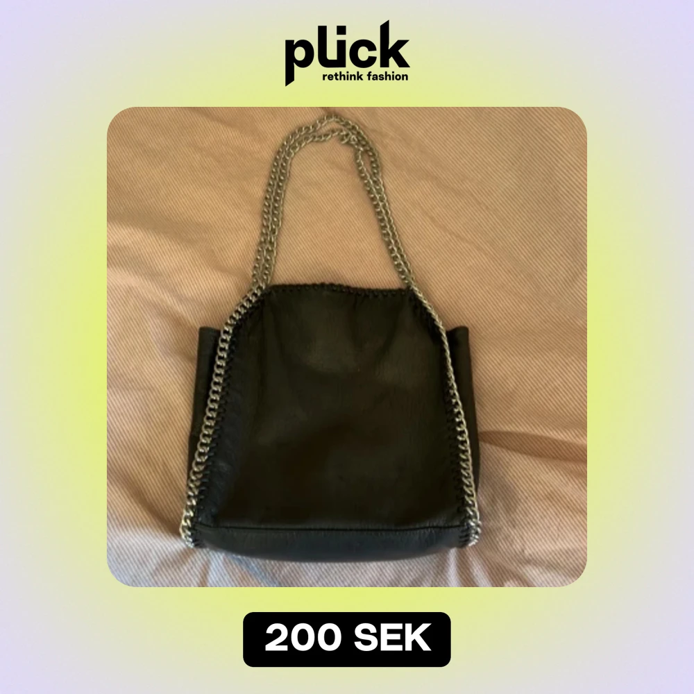Jättefin liknande stella mccartney väska. Bra skick, förutom att den har gått sönder lite uppe men lagat med säkerhetsnål (se bild). Skriv om ni har några funderingar eller vill ha fler bilder🩷🩷