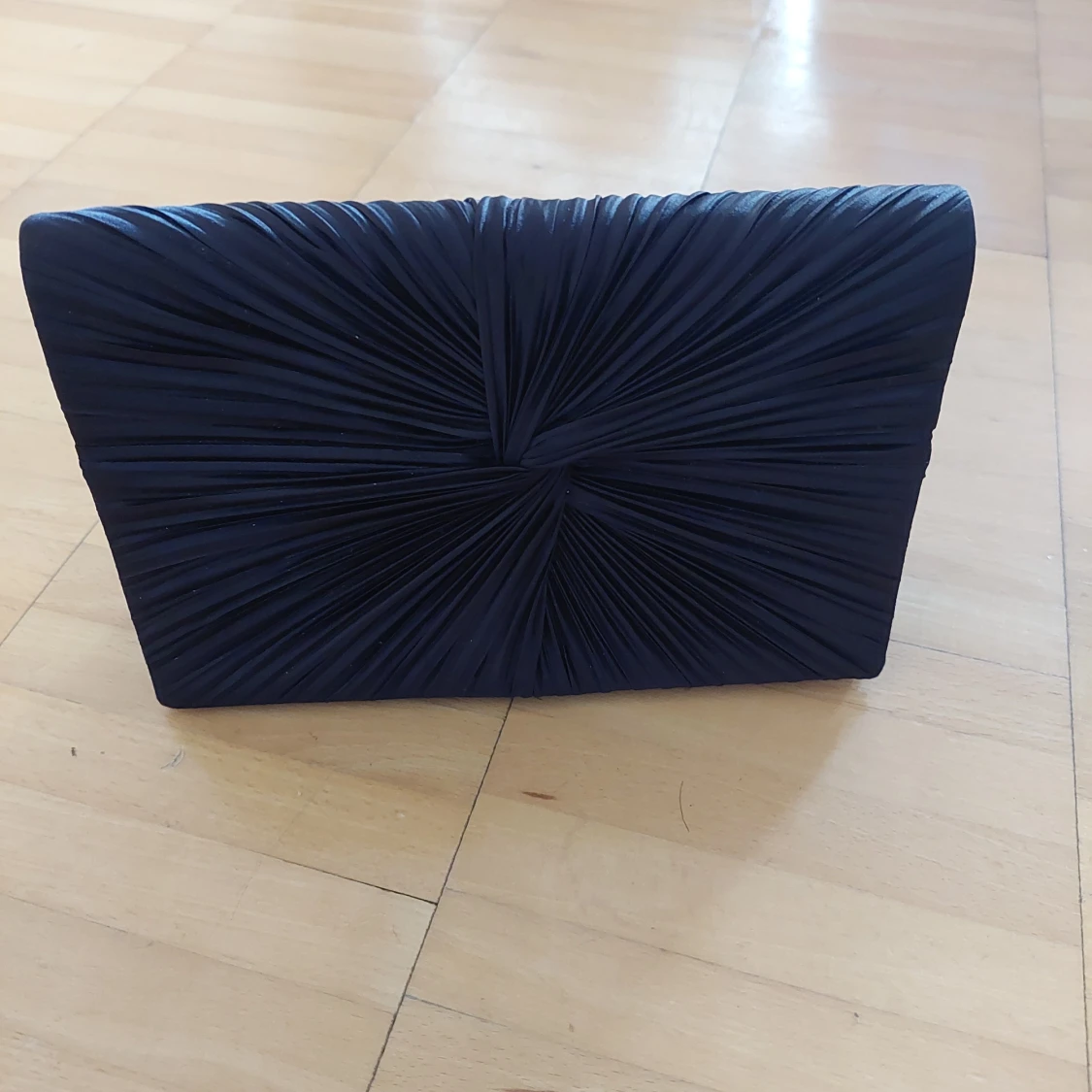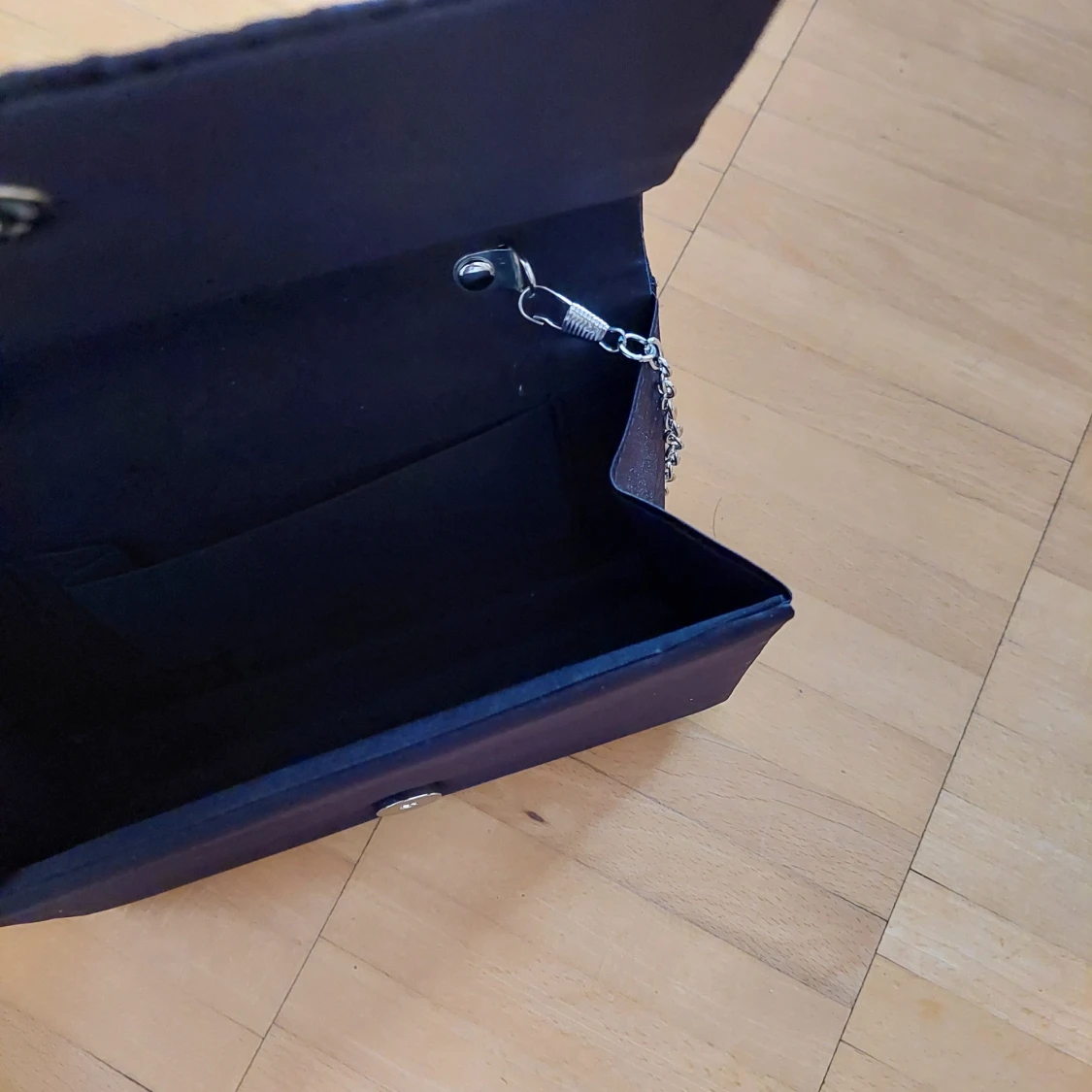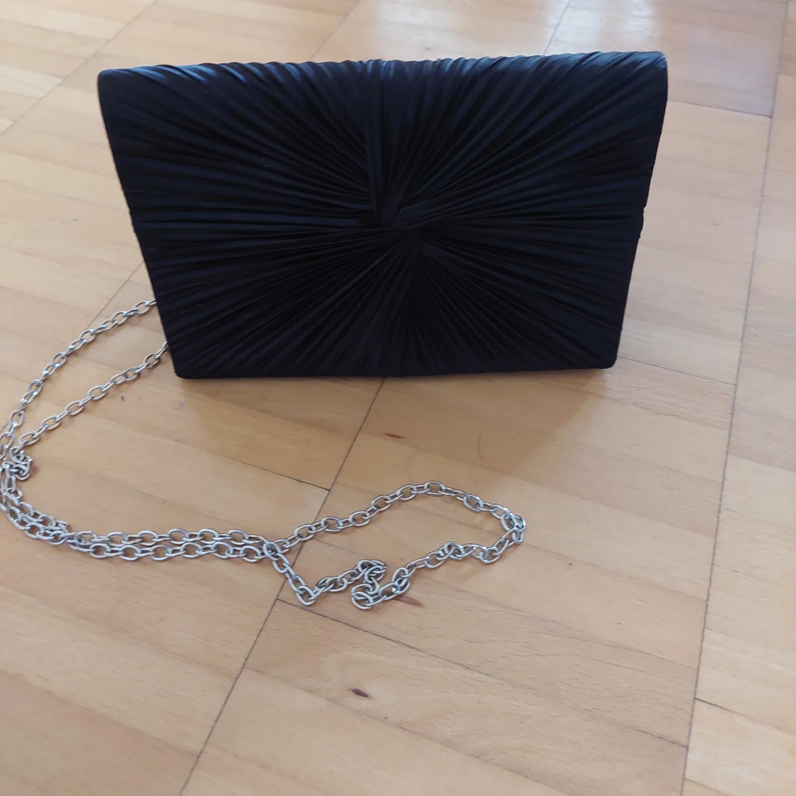 En svart partyväska med en avtagbar kedja, oanvänd.